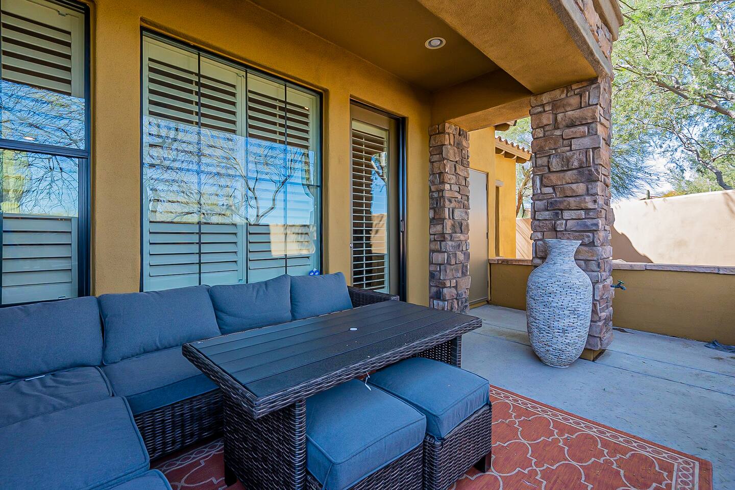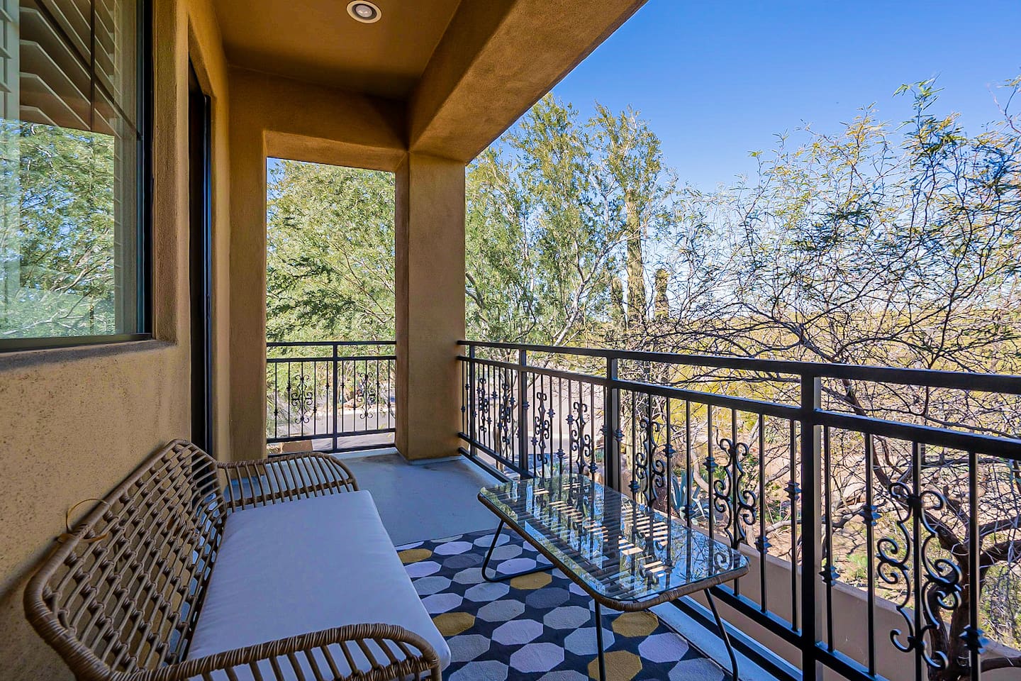 Experience elevated desert living at Grayhawk Flat, a modern and beautifully appointed 2-bedroom, 2.5-bath luxury townhome in one of North Scottsdale’s most exclusive communities. Designed for comfort and extended stays, this private retreat blends contemporary elegance with serene desert surroundings. Step onto one of two private outdoor patios and take in breathtaking views of the Sonoran landscape—perfect for sunrise coffee or an evening glass of wine under the glowing Arizona sky. The open-concept main level features a sophisticated living area and seamless indoor-outdoor flow, while the second level offers a tranquil balcony retreat off the primary suite. The chef’s kitchen comes fully equipped with high-end appliances, cookware, and all essential amenities, making long-term stays effortless. A private two-car garage adds convenience and security during your stay. Sleeping Arrangements: – Primary Suite (Second Level): King bed | Ensuite bathroom | Private patio – Guest Suite (Second Level): Queen bed | Ensuite bathroom – Den (Main Level): Queen sleeper sofa Luxury linens, plush towels, and premium toiletries (shampoo, conditioner, body wash) are thoughtfully provided. The home also includes central A/C and heating, in-unit washer and dryer, 2 Smart TVs, and high-speed WiFi throughout. As a guest of Grayhawk, enjoy access to premium community amenities, including: – Resort-style heated pool – Relaxing hot tub – Fully equipped fitness center – Outdoor BBQ pavilion and dining area Located just minutes from Mayo Clinic (6 miles), TPC Scottsdale, Kierland Commons, Desert Ridge Marketplace, and world-class hiking and golf, this home offers both convenience and tranquility in a prime North Scottsdale location.