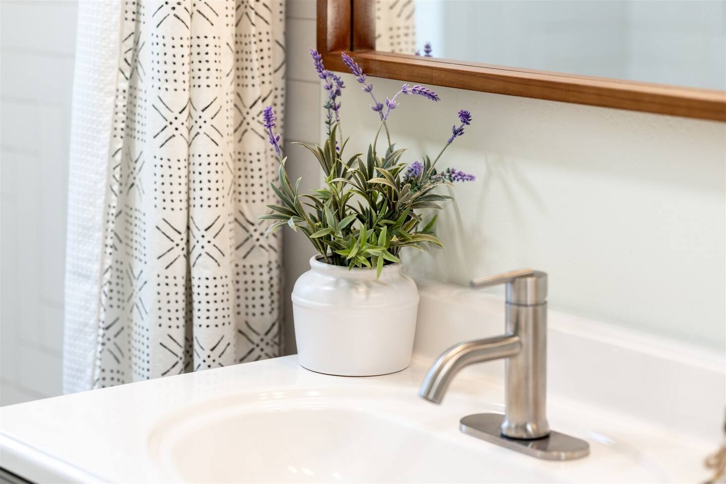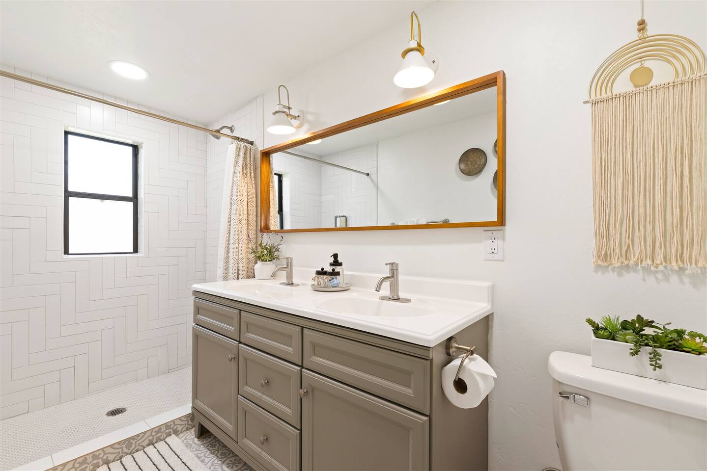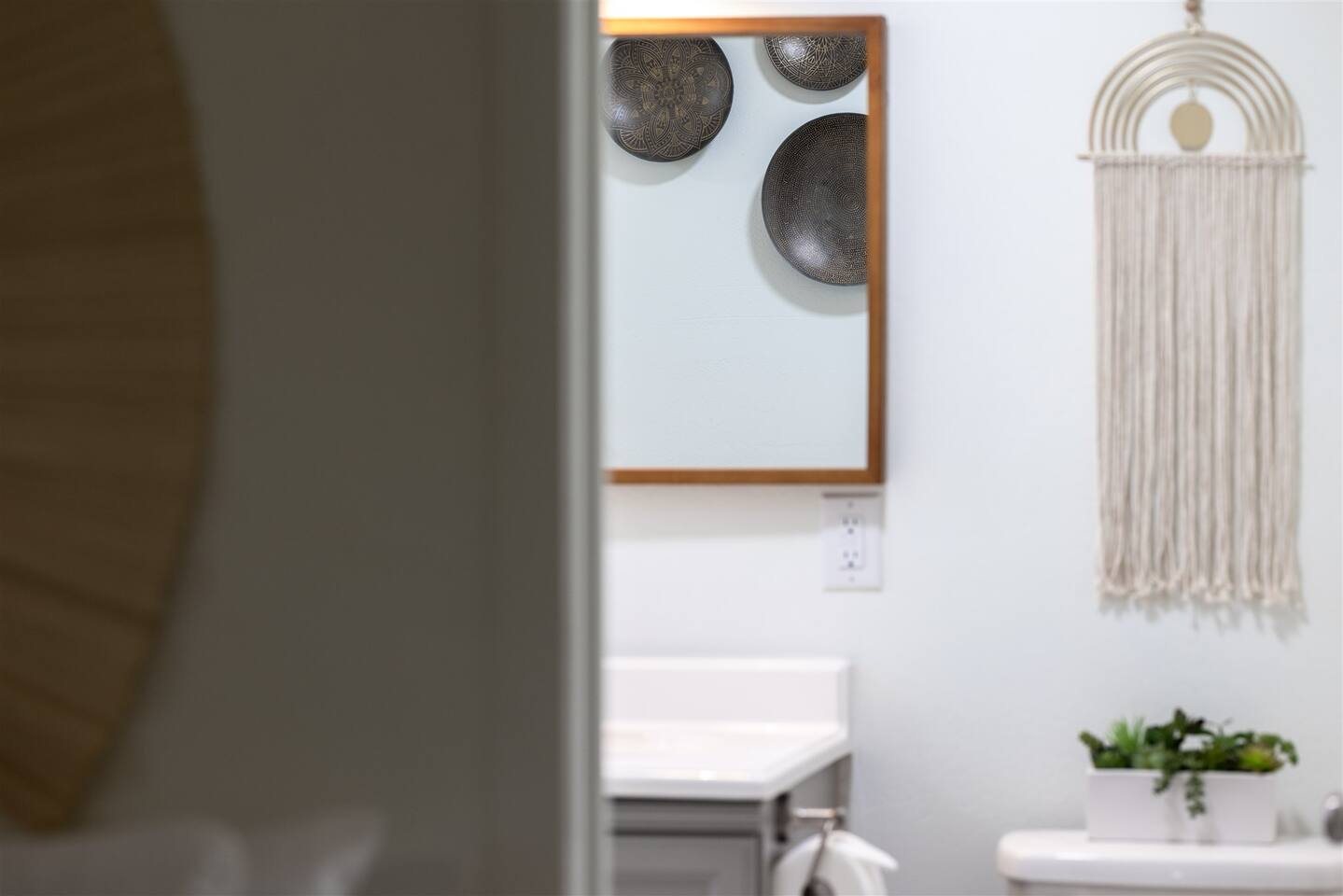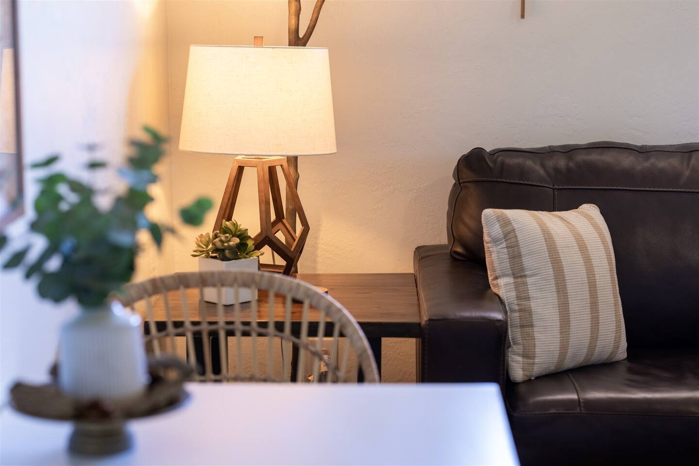 HEALTH AND CLEANLINESS Our unit is known for maintaining high cleanliness ratings. Our cleaning staff uses Lysol sterilizing products throughout the unit. All linens are washed with HOT water and sanitizing products. GENERAL SPACE INFO This newly remodeled guest suite is set up like a duplex and is excellent for those traveling alone, couples, or business travelers. Enter through your private entrance to view a newly remodeled bedroom, bathroom, living area, dining area, and kitchenette. We've styled this modern boho suite to provide a downtown apartment feel into this home. THE BEDROOM SPACE This newly remodeled bedroom features a king-size bed with fresh white linens and four king-sized pillows. The bedroom also features a large arched-top floor mirror and a boho-style nightstand with a touch-controlled table lamp with USB plugs for charging your phones. The bedroom also has a large semi-walk-in closet with hangers, an iron and ironing board, and extra blankets. THE BATHROOM This newly remodeled bathroom includes a sink, toilet, shower/tub, hairdryer, hair straighter, towel rack/hooks, and fresh towels. As added amenities, you will be provided complimentary hand soap, shampoo, conditioner, body soap, and extra towels for your stay. THE KITCHENETTE/COFFEE BAR The kitchenette includes a large under-counter fridge, 3-in-1 microwave, air fryer, convection oven, Keurig coffeemaker, countertop water dispenser, toaster, plates, glasses, utensils, and towels. The kitchenette is supplied with coffee pods, sugar, and coffee creamer. Like most kitchenettes, this unit does NOT have a kitchen sink. THE LIVING ROOM AREA The living room area features a 3 person pull-out couch with end tables and a 55" Smart TV with all the streaming services you'll need. The pull-out couch is a 5-inch memory foam bed, supplied with fresh white sheets, a Serasoft Blanket, and 2 down feather pillows. OUTSIDE/PROPERTY INFO The outdoor area for this unit has a new, fully fenced-in area with tropical plants, a grapefruit tree hammock, and a seating area.