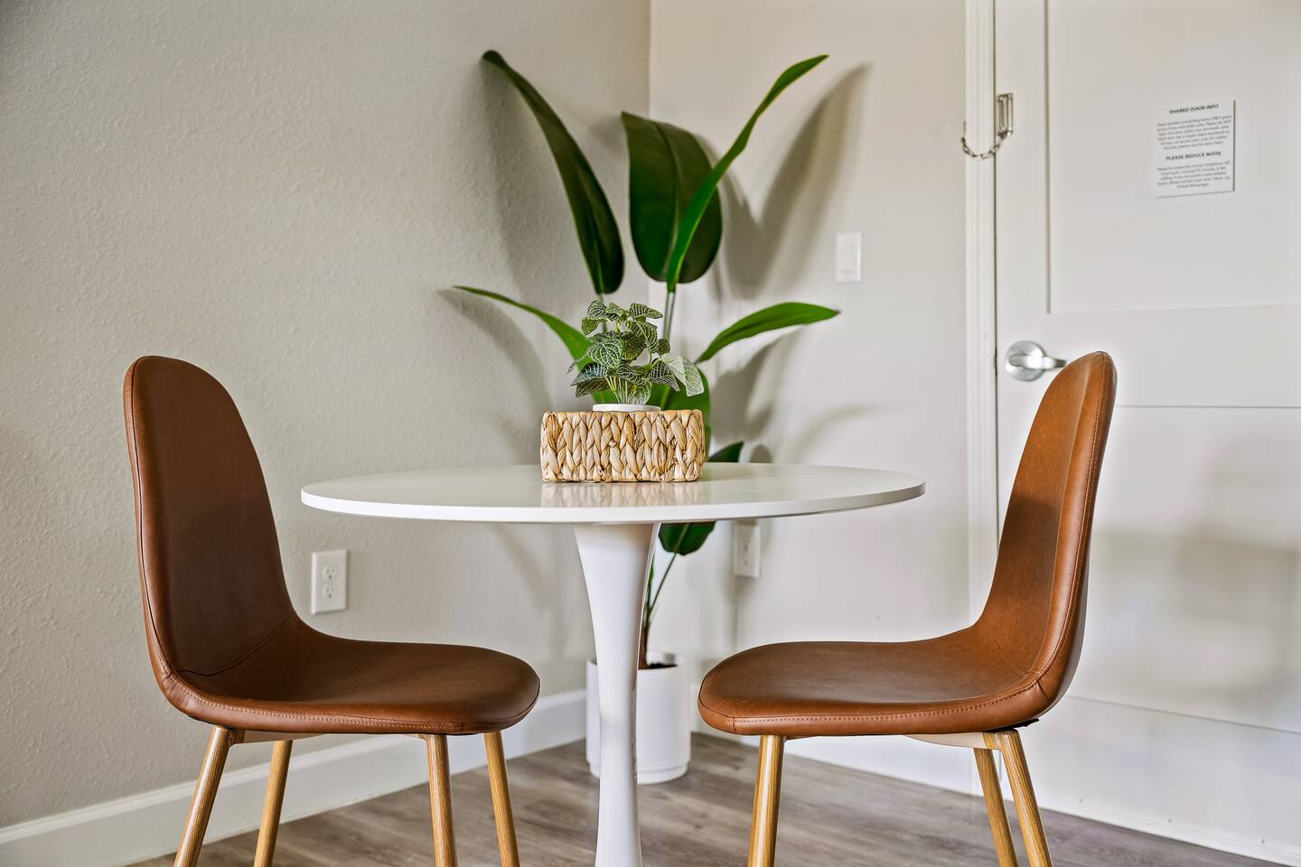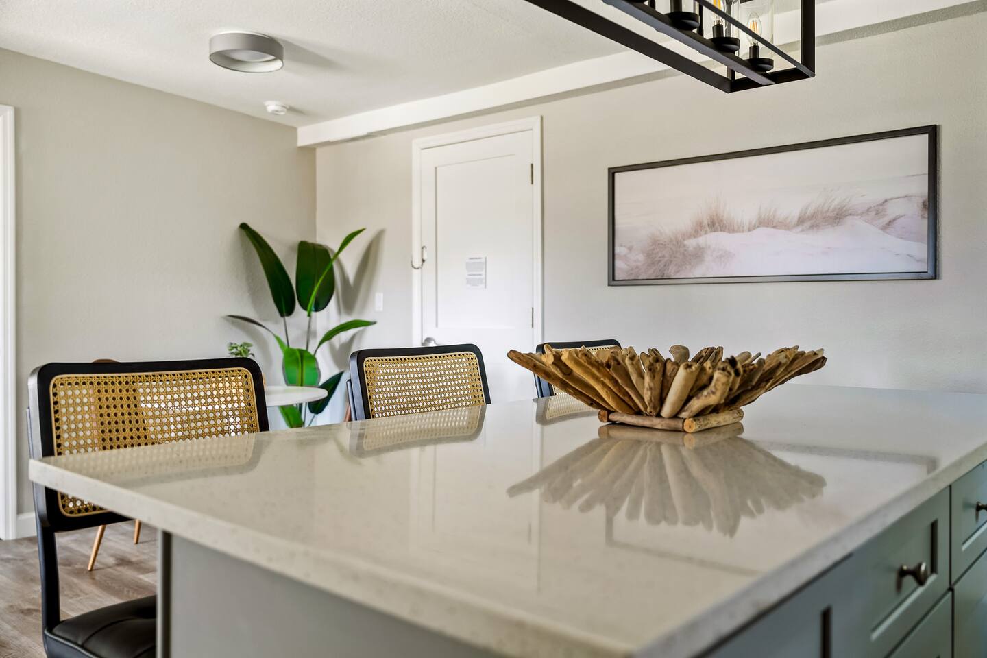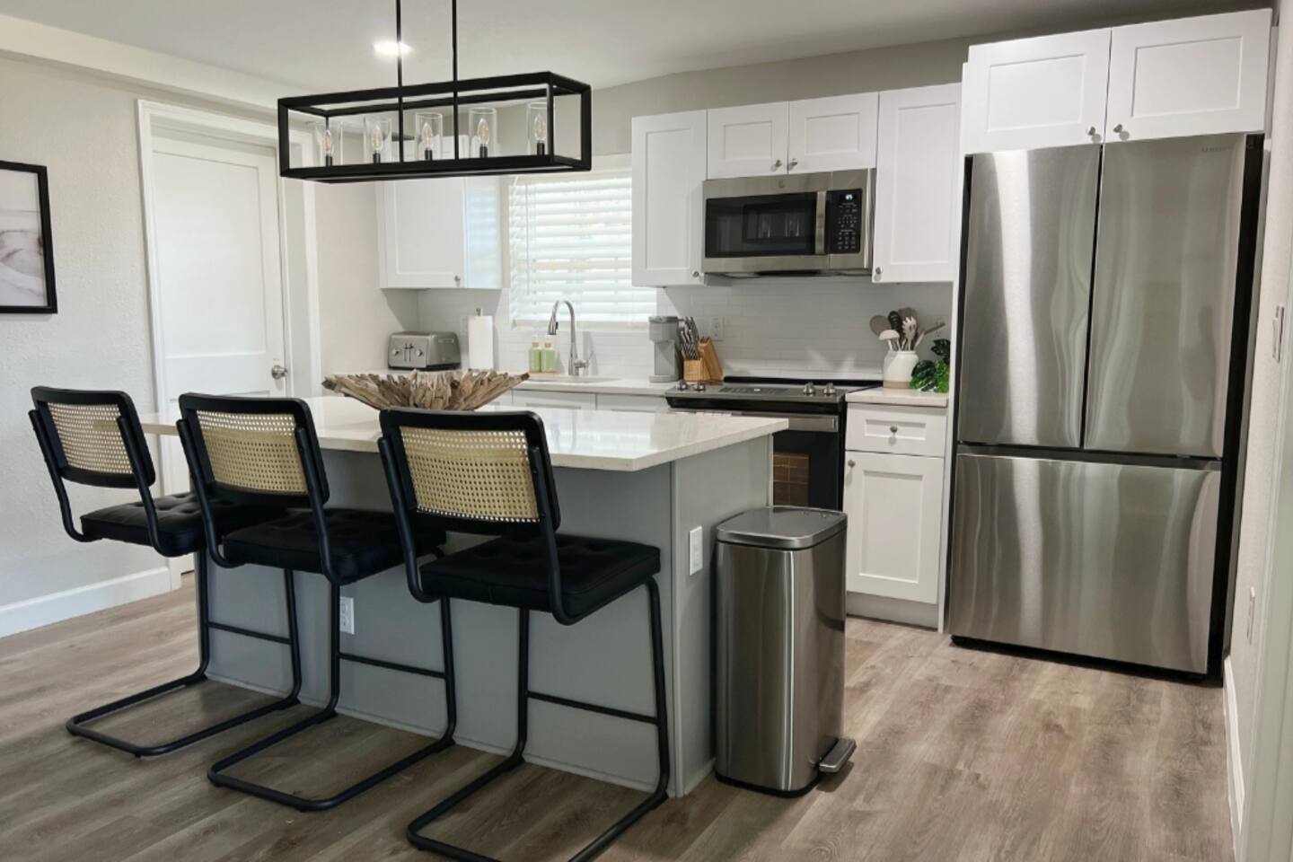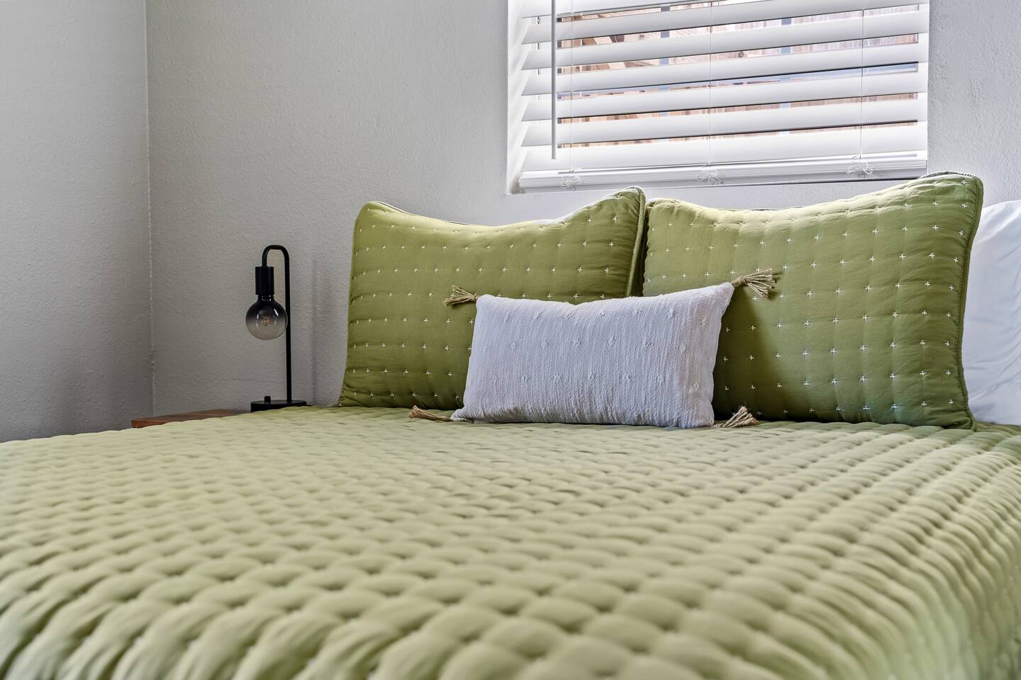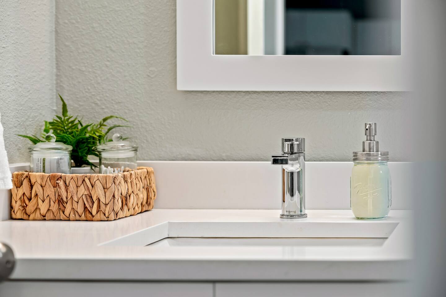 HEALTH AND CLEANLINESS Our unit is known for maintaining high cleanliness ratings. Our cleaning staff uses Lysol sterilizing products throughout the unit. All linens are washed with HOT water and sanitizing products. GENERAL SPACE INFO This newly remodeled unit is set up like a duplex and is excellent for those traveling alone, couples, or business travelers. Enter through your private entrance to view a new bedroom, bathroom, living area, dining area, and kitchen. We've styled this beachy boho unit to provide a downtown apartment feel to this home. THE BEDROOM SPACES This newly remodeled bedroom features queen and full-size beds with fresh white linens and four pillows. The bedroom also has large closets with hangers, an iron and ironing board, luggage racks, a shoe shelf, and extra blankets. THE BATHROOM The bathroom includes a sink, toilet, shower/tub, a hairdryer, hair straighter, a towel rack/hooks, and fresh towels. As added amenities, you will be provided complimentary hand soap, shampoo, conditioner, body soap, and extra towels for your stay.