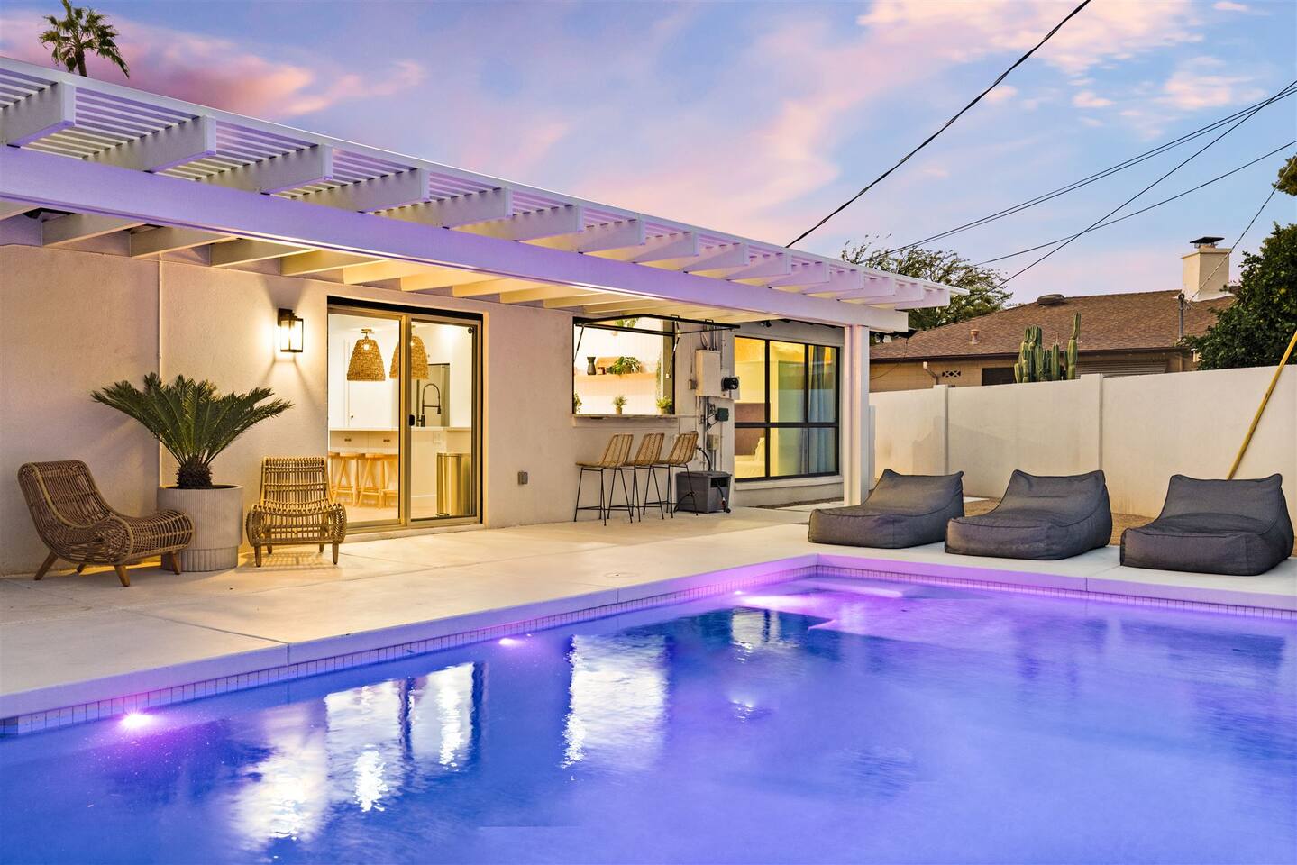 Did someone say "Desert Oasis"? Enjoy this newly remodeled home just minutes away from Old Town Scottsdale! This open floor plan is the perfect space for young adults to enjoy. Complete with a pool, fire pit, and indoor/outdoor bar with tropical views of palm trees and mountains! This open floor plan is the ultimate "influencer spot", with picturesque spots around every corner. Did I mention built-in bunk beds?