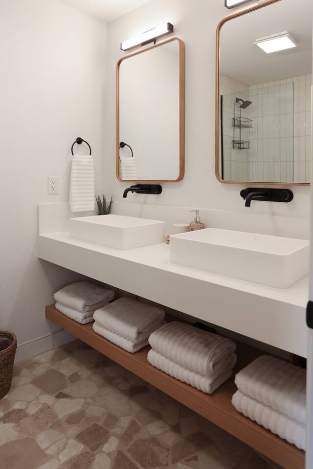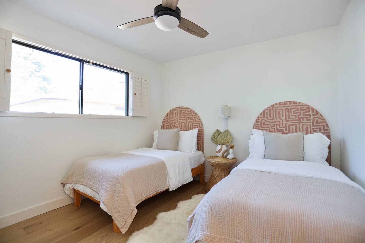 The Margot is a 4 bedroom, 2 bathroom home complete with picturesque spots around every corner! Gather around the dining table to eat brunch, play card games, or sip on mimosas! The highlight of the kitchen is the indoor/outdoor awning window, which opens up to a glorious view of the pool, complete with 3 bar stools on the patio end. The kitchen then opens up to the living room, so you can converse while you are a bartender! The 3 of the 4 bedrooms are tucked away toward the back of the home, each one beautiful in its own way! COFFEE MACHINE INFO The unit has a DRIP and SINGLE SERVE machine. To get you started, we provide a handful of single-serve cups for each reservation. Heavy coffee drinkers may need to bring additional coffee. POOL TOWELS Yes, we have pool towels at the property for your whole reservation.