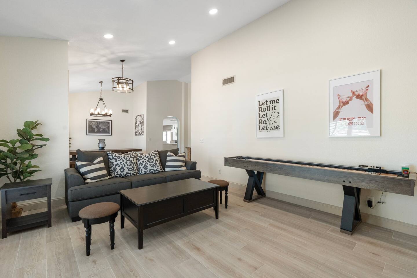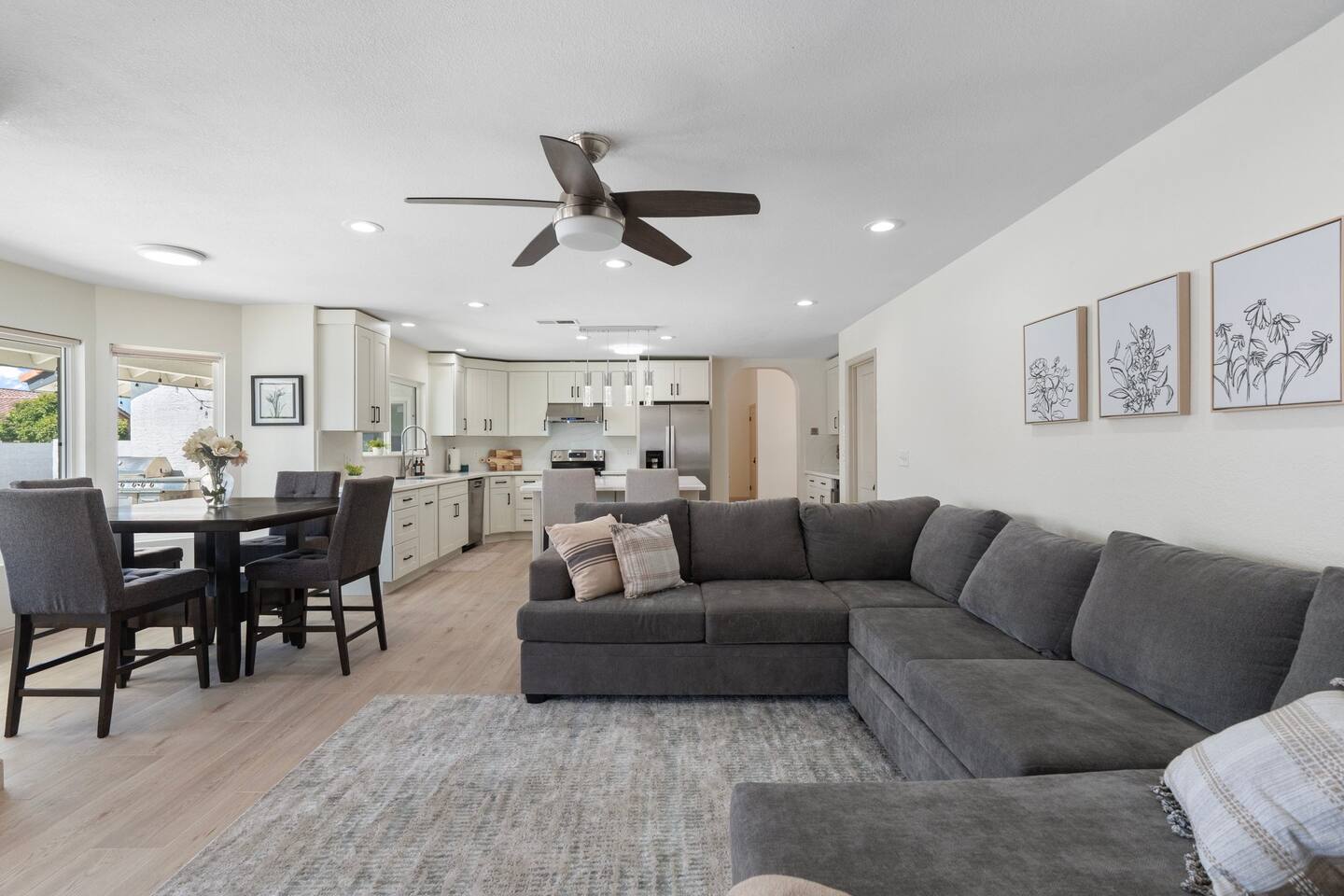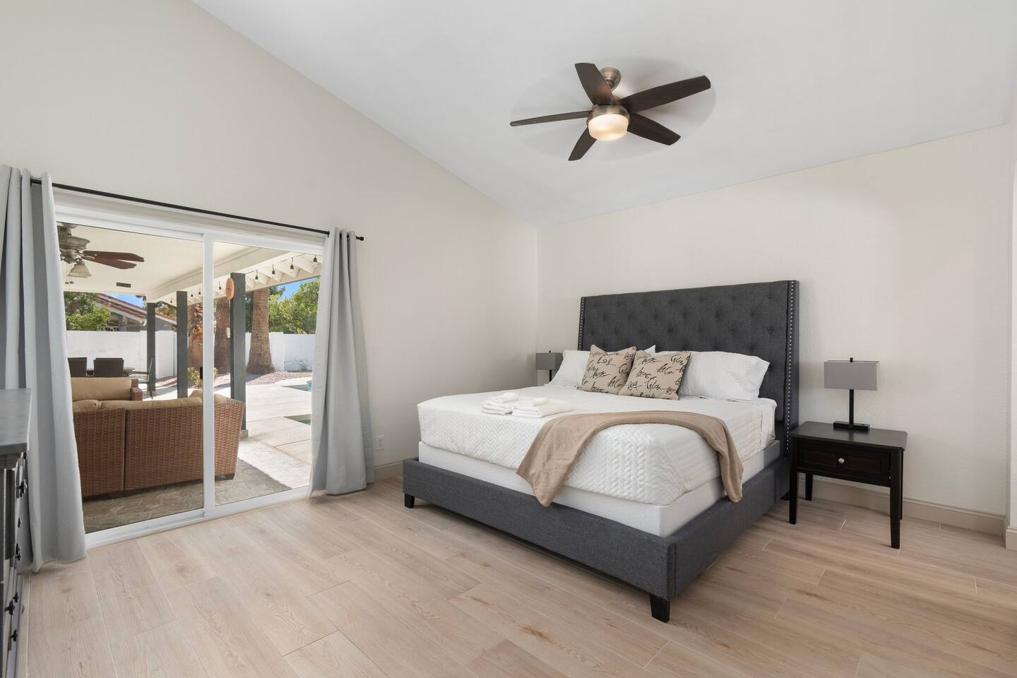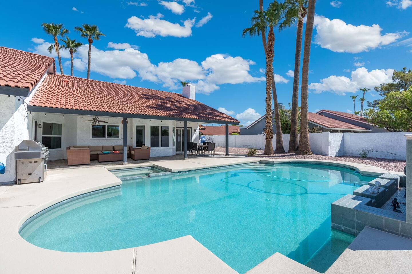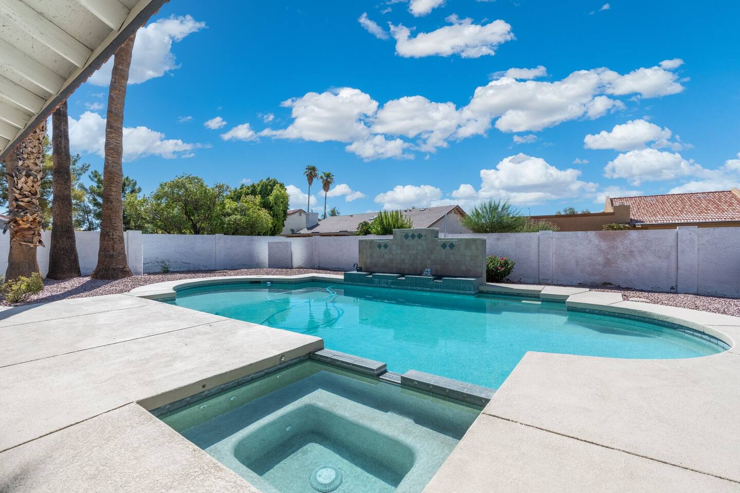 Welcome to Desert Lounge Chandler—your ideal Arizona retreat! Enjoy a private pool with a relaxing waterfall, spacious backyard for lounging or BBQs, and modern comforts throughout. The open layout connects a fully equipped kitchen with cozy living spaces, perfect for family time or gathering with friends. Whether relaxing in the sun or dining under the stars, your getaway is ready for unforgettable memories.