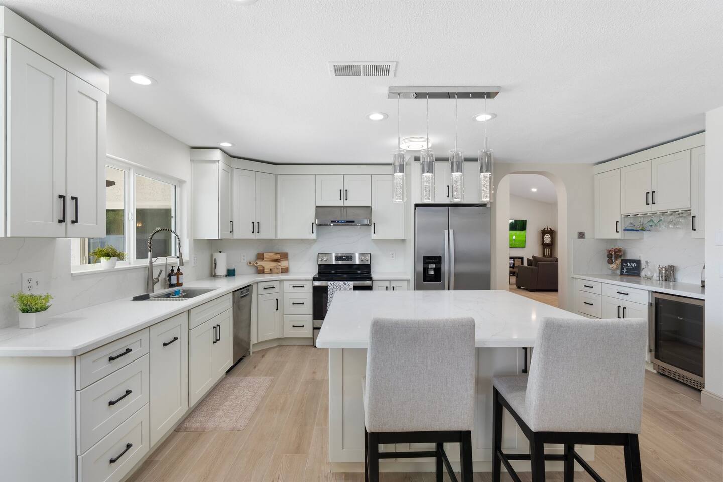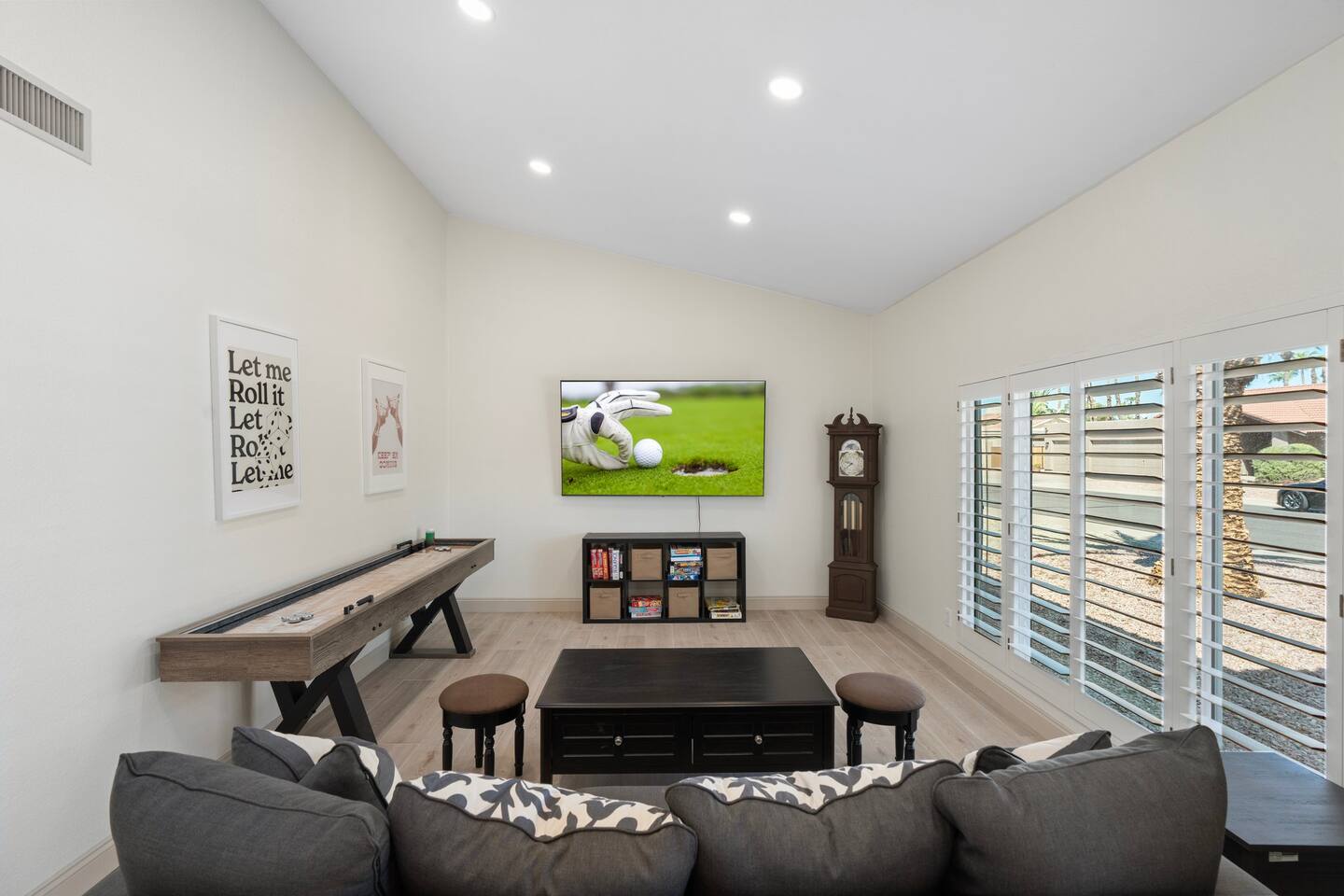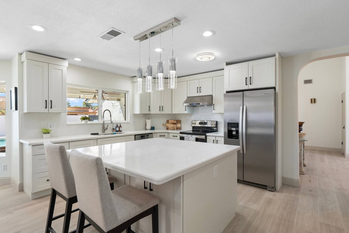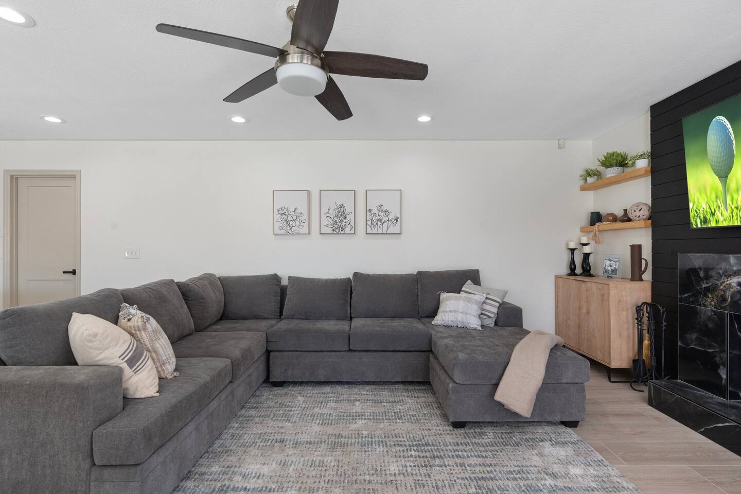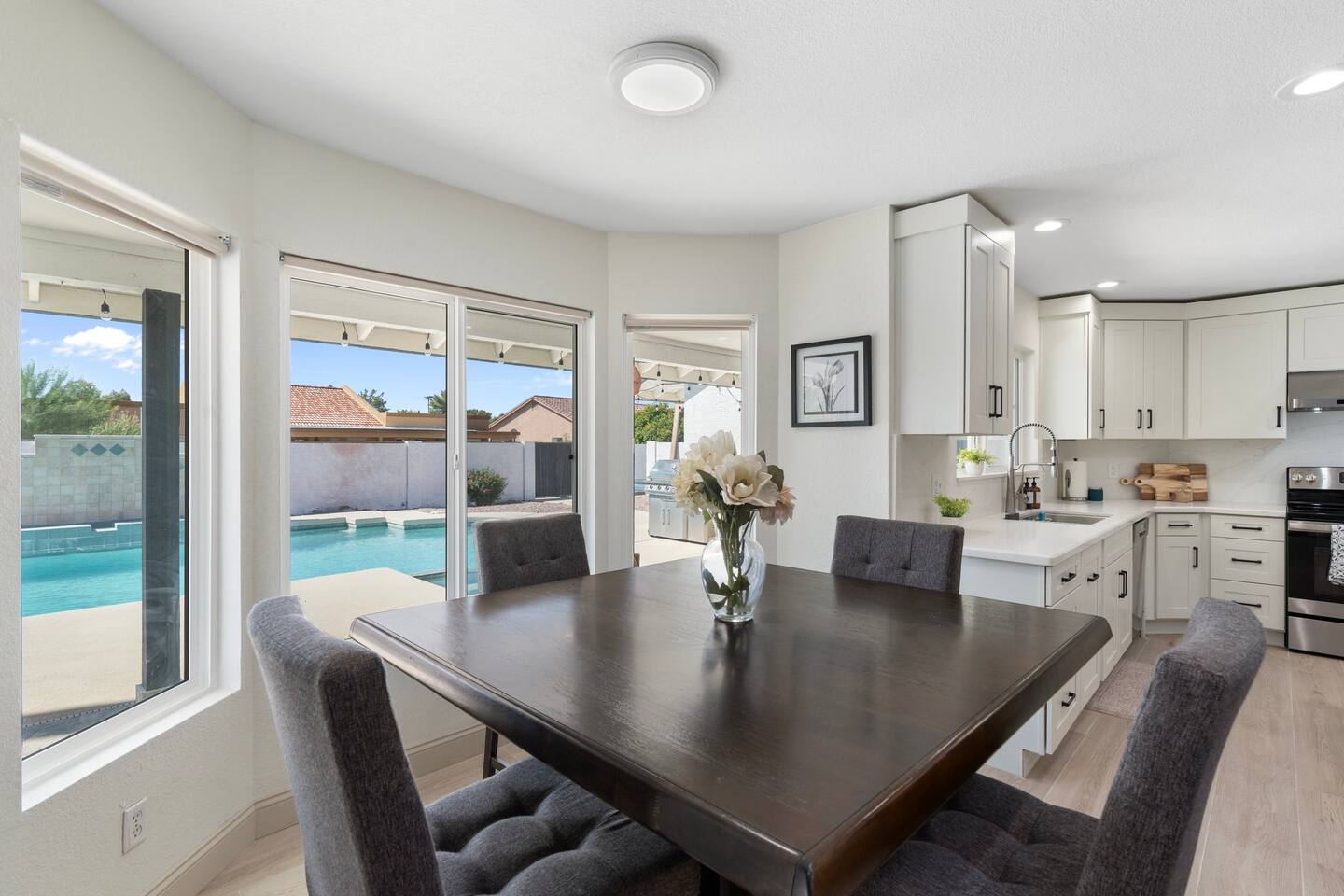 Welcome to Desert Lounge Chandler—your ideal Arizona retreat! Enjoy a private pool with a relaxing waterfall, spacious backyard for lounging or BBQs, and modern comforts throughout. The open layout connects a fully equipped kitchen with cozy living spaces, perfect for family time or gathering with friends. Whether relaxing in the sun or dining under the stars, your getaway is ready for unforgettable memories.