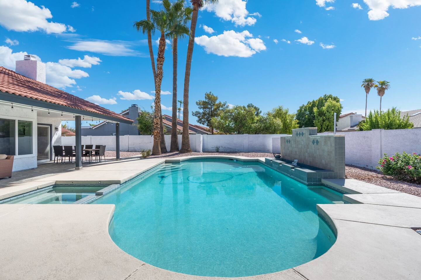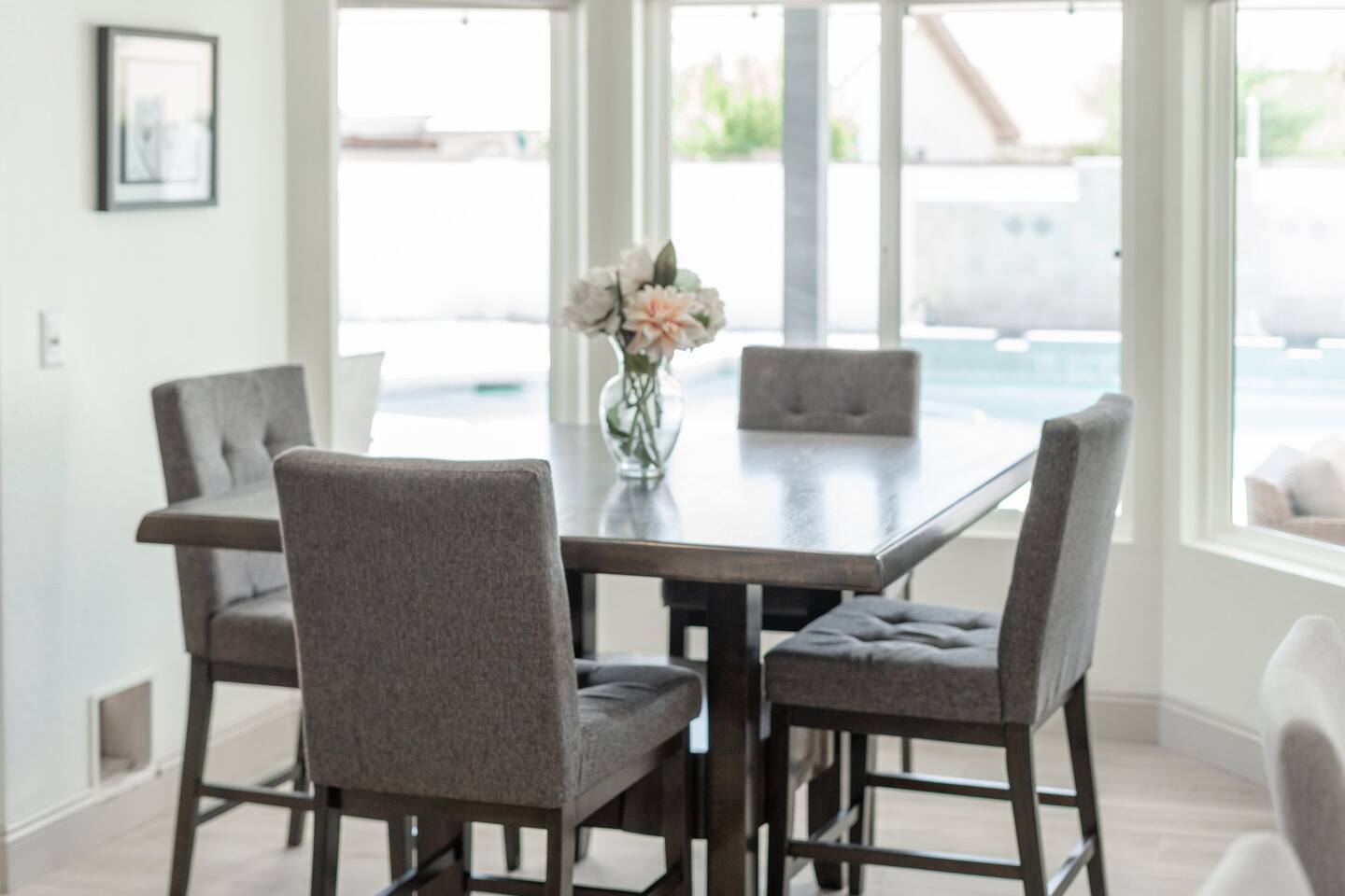 Backyard Oasis with Waterfall Feature The heart of Desert Lounge Chandler is its private pool, complete with a tranquil waterfall that sets the perfect backdrop for relaxation. Spend your days swimming, sunbathing, or unwinding poolside with a book in hand. As the sun sets, the outdoor lounge and BBQ area create the ideal setting for casual dining and evening gatherings under the desert sky. Comfort Meets Style Indoors Step inside to an open-concept floor plan with inviting living and dining areas. The décor blends comfort with clean, modern lines—plush seating, warm finishes, and thoughtful touches throughout. It’s the kind of space that feels both elevated and welcoming, perfect for group time or a quiet evening in. Bedrooms & Baths Designed for Rest Each bedroom is furnished with soft bedding and fresh linens to ensure a restful stay. Bathrooms are updated with modern fixtures, delivering convenience and a fresh, spa-like feel without being overdone. Well-Equipped Kitchen The full kitchen is ready for everything from quick breakfasts to shared dinners. With updated appliances, ample counter space, and a single-serve coffee maker (starter pods provided), it’s designed for everyday ease and entertaining alike. Smart Amenities for a Seamless Stay High-speed WiFi, smart TVs, and provided pool towels round out the essentials, giving guests a smooth experience from check-in to check-out. Every detail has been considered so you can simply arrive and enjoy. A Chandler Stay, Done Right Located in a convenient Chandler neighborhood, you’ll be close to local dining, shopping, and entertainment. Whether it’s a weekend trip with friends, a family getaway, or a longer stay, Desert Lounge Chandler is the kind of property that balances comfort, practicality, and that little bit of Arizona flair. COFFEE MACHINE INFO The unit has a SINGLE SERVE machine. To get you started, we provide a handful of single-serve cups for each reservation. Heavy coffee drinkers may need to bring additional coffee. POOL TOWELS Yes, we have pool towels at the property for your whole reservation.