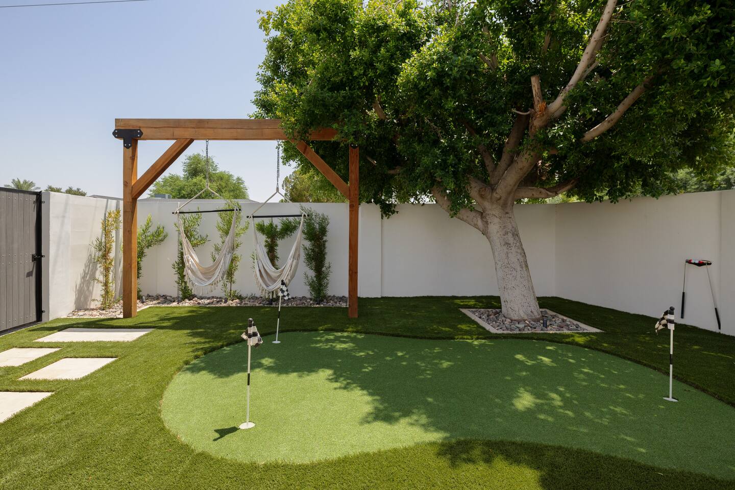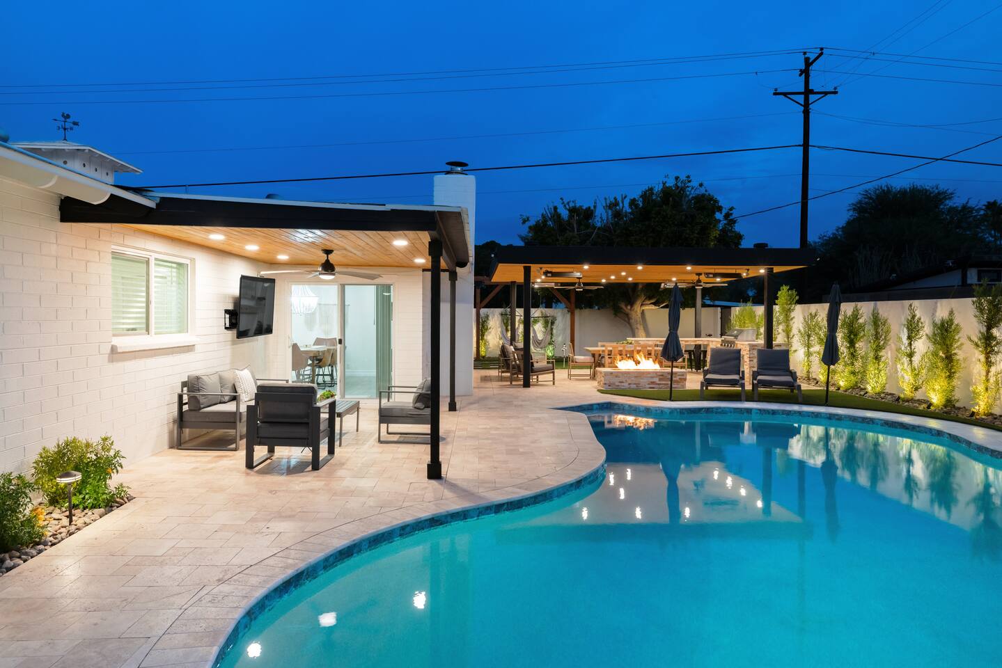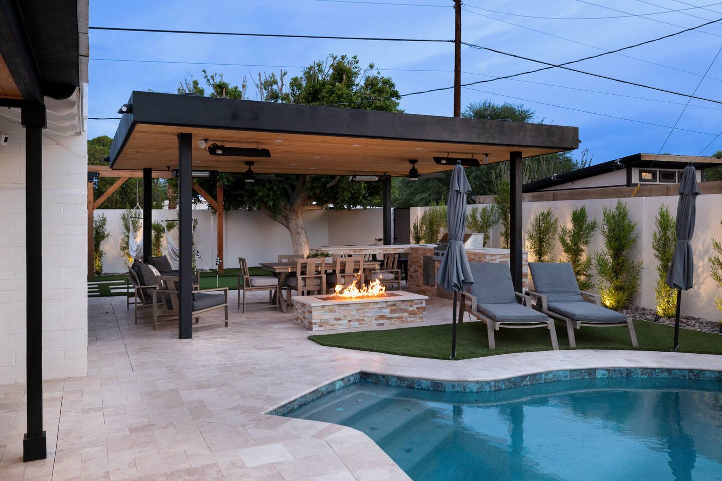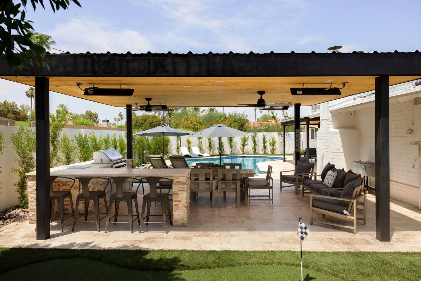 Sonoran Ranch is a newly remodeled modern desert oasis only minutes away from Old Town Scottsdale! This open floor plan is the perfect space for young adults or families to enjoy. Complete with a pool, fire pit, putting green, outdoor BBQ grill, and outdoor dining with tropical views of palm trees and mountains! This is the ultimate private resort vibe, with picturesque spots around every corner!