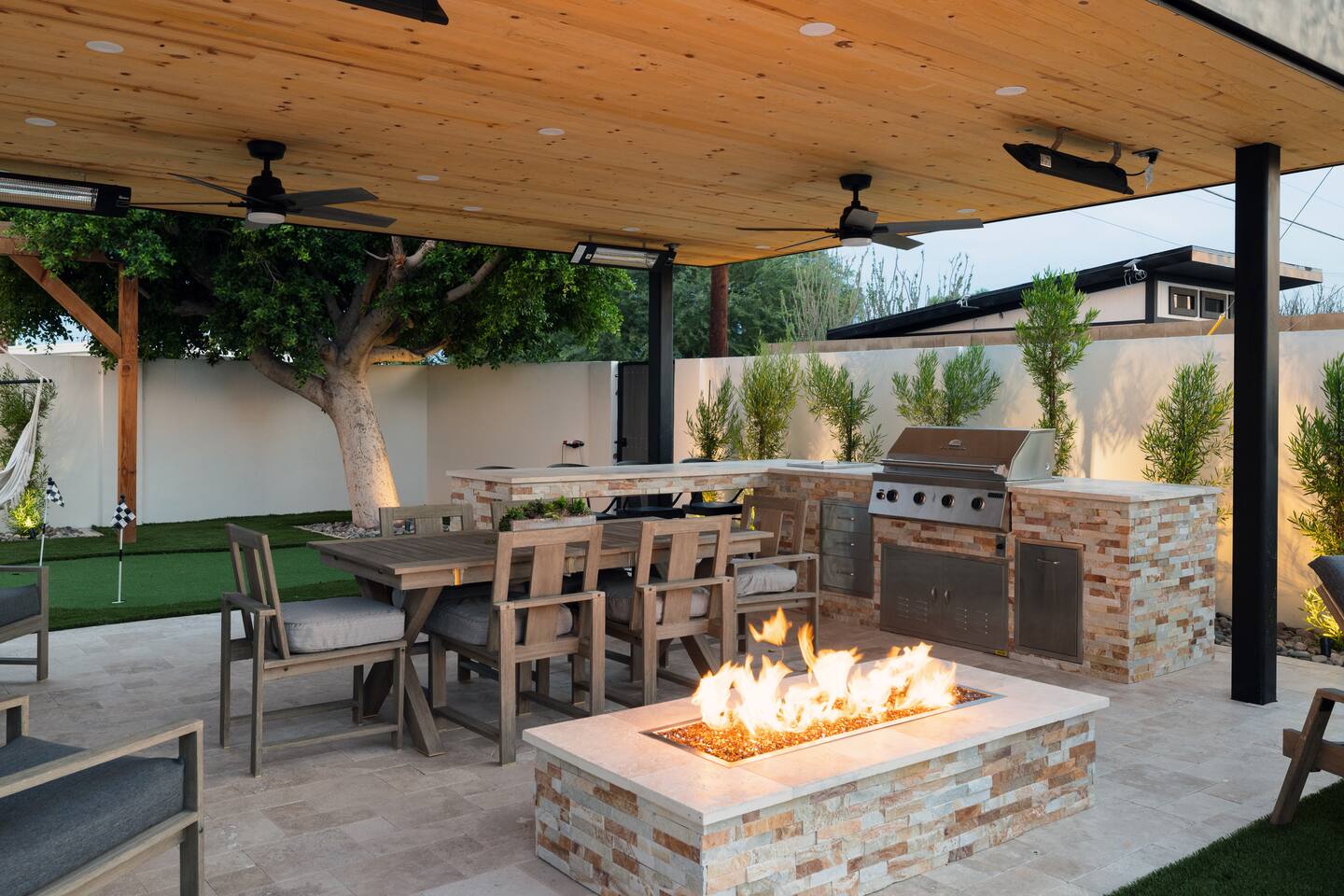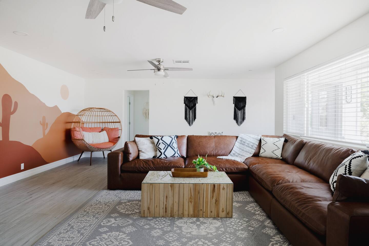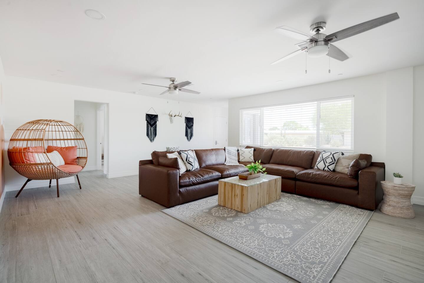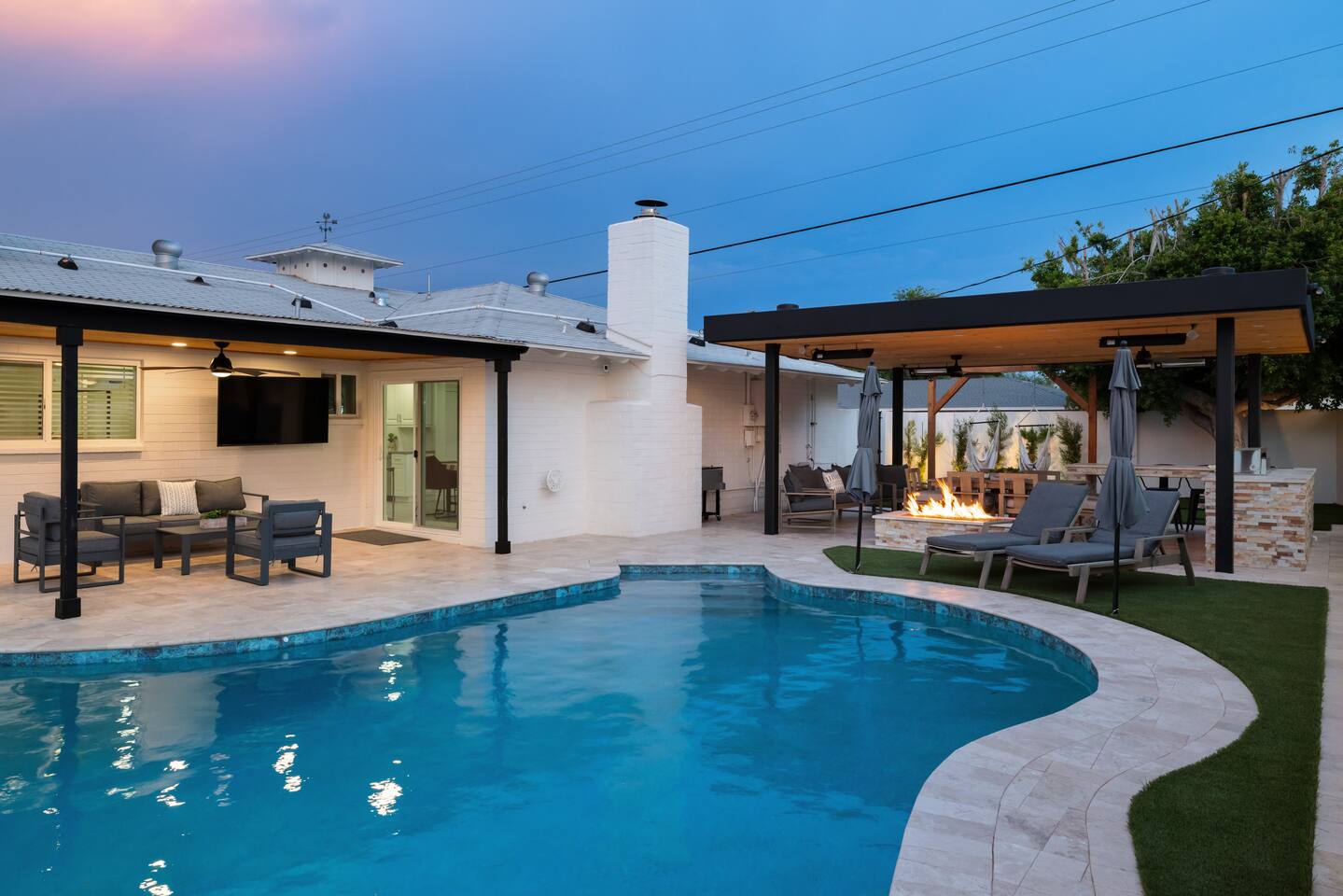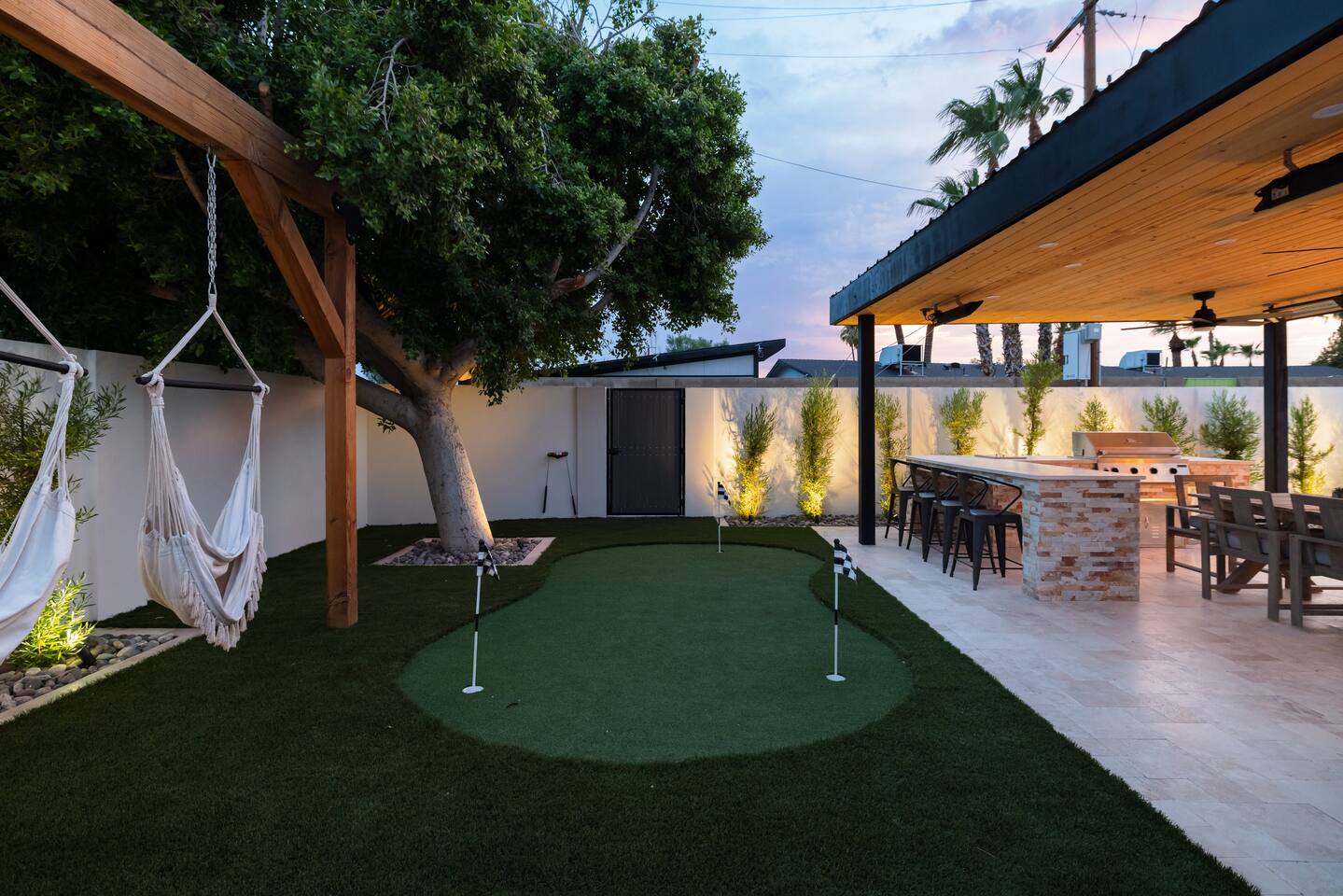 Sonoran Ranch is a newly remodeled modern desert oasis only minutes away from Old Town Scottsdale! This open floor plan is the perfect space for young adults or families to enjoy. Complete with a pool, fire pit, putting green, outdoor BBQ grill, and outdoor dining with tropical views of palm trees and mountains! This is the ultimate private resort vibe, with picturesque spots around every corner!