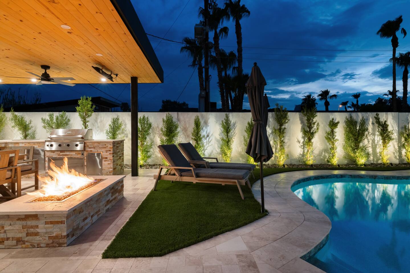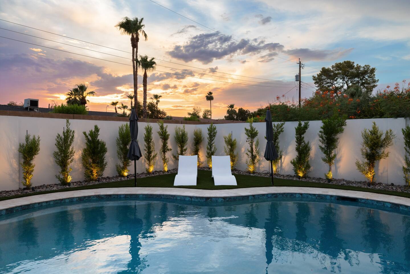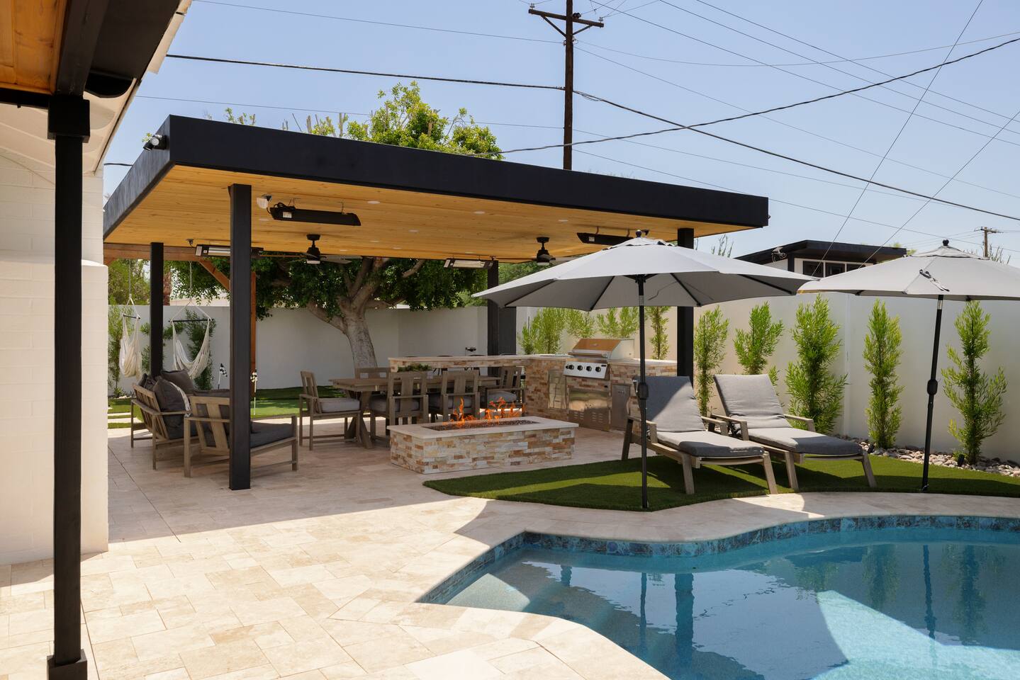 BACKYARD As you step outside, discover a private paradise in the backyard designed for relaxation and entertaining. Dip into the pool and gather around the fire pit to create lasting memories with friends and family. Dine al fresco at the outdoor table or sip refreshing drinks at the bar under the gazebo, offering seating for up to 8 guests. This home invites you to experience the allure of the desert at this modern retreat, where stylish design and relaxation harmoniously come together for an unforgettable stay. Your perfect desert getaway awaits! COFFEE MACHINE INFO The unit has DRIP and NESPRESSO machines. To get you started, we provide a handful of single-serve cups for each reservation. Heavy coffee drinkers may need to bring additional coffee. POOL TOWELS Yes, we have pool towels at the property for your whole reservation.