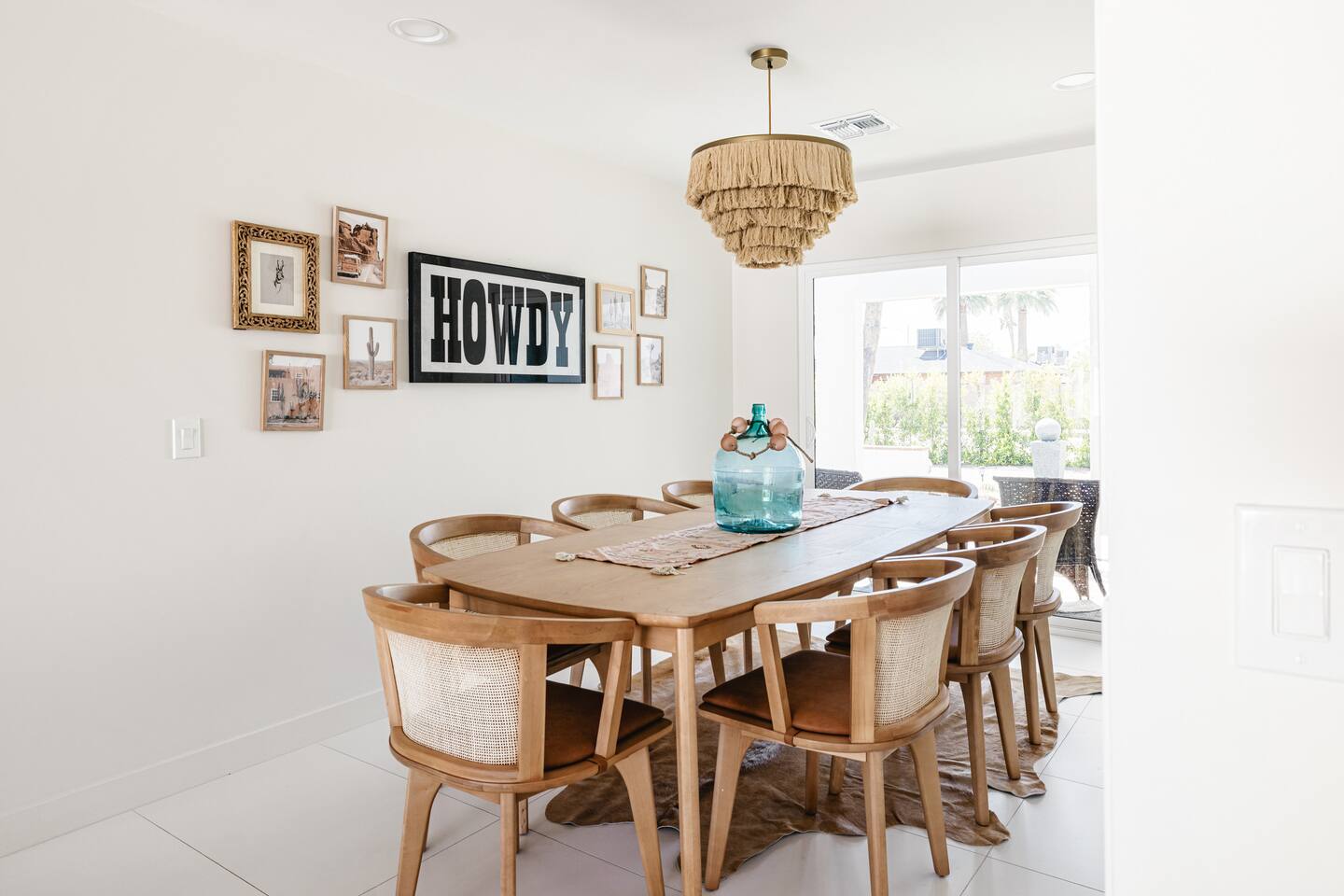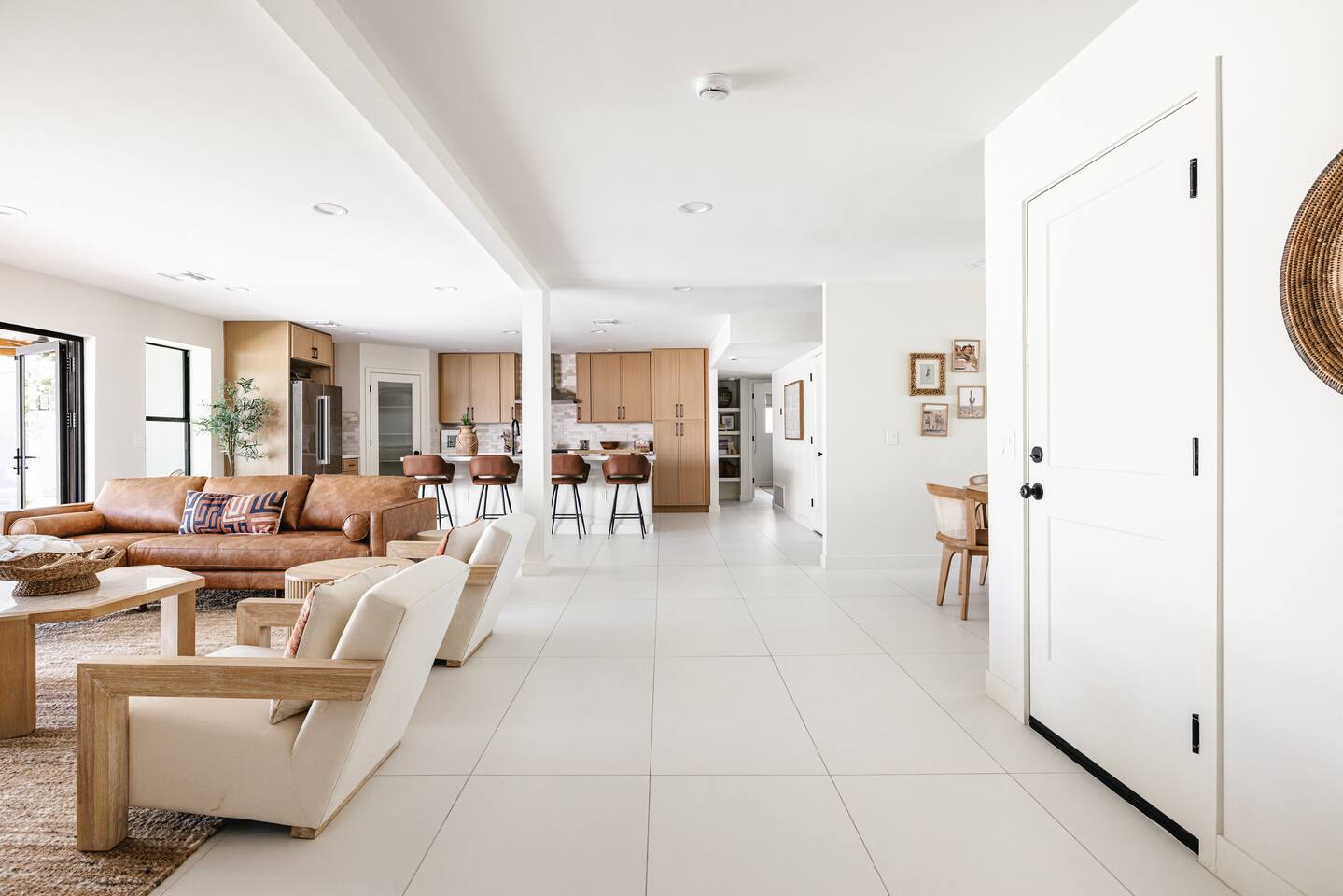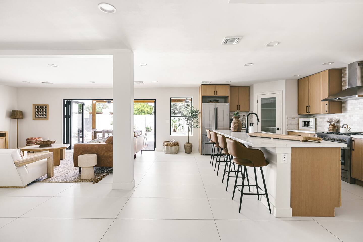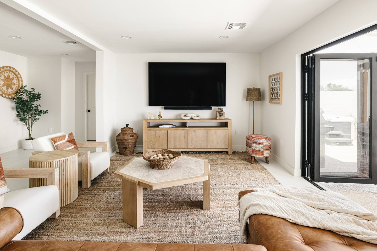 PARKING & ARRIVAL As you arrive, you'll immediately notice the ease of access and ample space provided by the wraparound parking and extended driveway. With room for up to 4–5 vehicles, this property welcomes your group with convenience from the very start. ENTRY & INTERIOR LAYOUT Step through the front door into a bright, airy, and thoughtfully designed open-concept living space. Natural light floods the interiors, highlighting a perfect blend of warm desert tones and chic boho accents. Every room is styled for comfort and luxury. Enjoy KITCHEN At the heart of the home lies a stunning new oak kitchen outfitted with top-of-the-line appliances and all the essentials you need for cooking and entertaining. Stainless steel appliances, ample counter space, and custom cabinetry make this kitchen both functional and elegant. Whether you’re preparing a gourmet meal or blending margaritas for the group, this space delivers. LIVING ROOM The living area offers a welcoming space to unwind, complete with plush seating and a large smart TV. Gather here for movie nights, game days, or simply to relax after a day exploring Scottsdale. The open layout encourages connection, while the refined design offers tranquility. A standout feature of this space is the expansive folding glass patio door, which opens wide to seamlessly blend the indoors with the backyard—perfect for enjoying Arizona’s beautiful weather and effortless indoor-outdoor living. GARAGE GAME SPACE Just off the main living area, the garage has been transformed into a fun rec space featuring a private ping-pong table and a lounge area. Whether it’s friendly competition or laid-back entertainment, it’s a favorite spot for guests of all ages. BEDROOMS & BATHROOMS Each bedroom is styled for maximum comfort, featuring luxurious linens, stylish decor, and ample storage. The bathrooms are equally refined, offering a spa-like feel with modern fixtures and premium finishes. BACKYARD OASIS Step outside and experience your own private resort. The backyard is framed by mountain views and swaying palm trees, creating the ultimate vacation vibe. Lounge by the sparkling pool, soak in the private hot tub (seating five), or enjoy the putting green for a casual round of fun. Cozy up around the fire pit with seating for four, or gather at the outdoor dining table for al fresco meals under the stars. The outdoor BBQ grill makes entertaining easy and memorable. DESIGN & STYLE The entire home is designed in a modern Southwest Boho aesthetic—earthy, stylish, and comfortable. Every element has been curated to elevate your experience, from furniture to finishes. LOCATION SOTO is ideally situated just a short drive from Old Town Scottsdale’s vibrant scene—packed with restaurants, shopping, art, and nightlife. Whether you're here to explore or escape, SOTO puts you in the perfect spot. COFFEE MACHINE INFO We have a DRIP and SINGLE SERVE machine in the unit. We provide a handful of single-serve K cups for each reservation to get you started. Heavy coffee drinkers may need to bring additional coffee. POOL TOWELS We have pool towels at the property for your whole reservation.