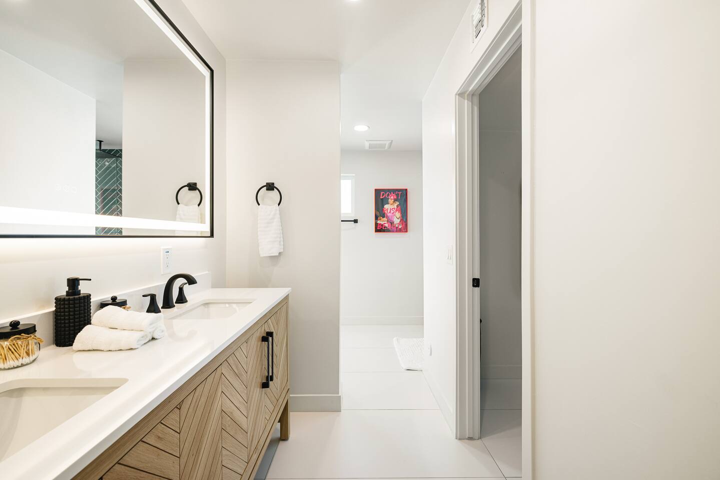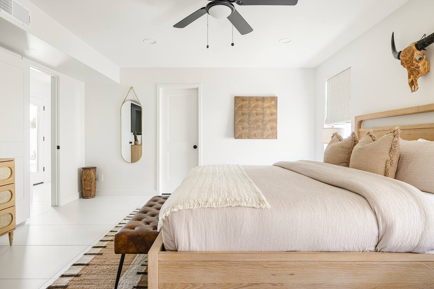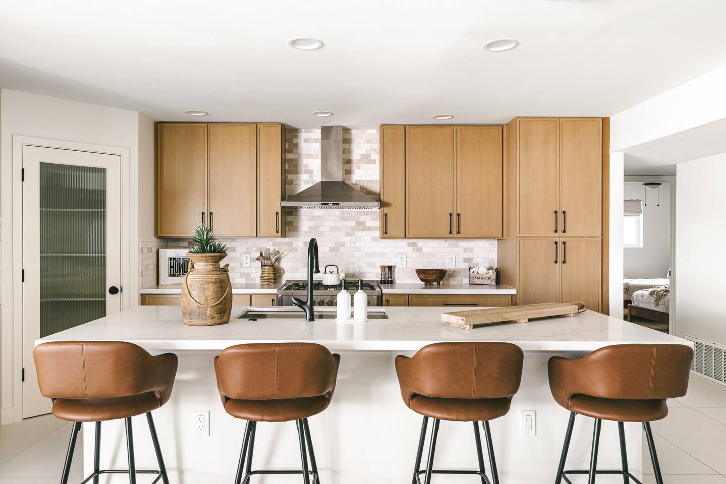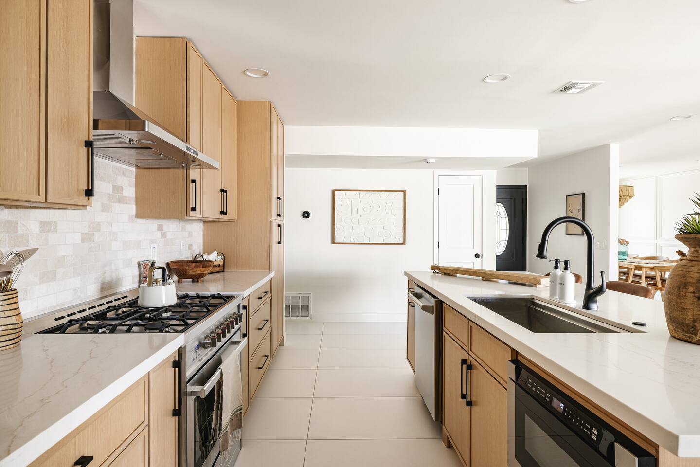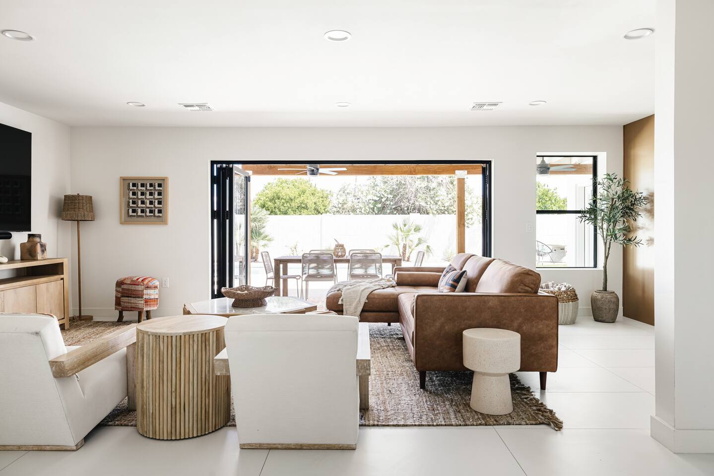 PARKING & ARRIVAL As you arrive, you'll immediately notice the ease of access and ample space provided by the wraparound parking and extended driveway. With room for up to 4–5 vehicles, this property welcomes your group with convenience from the very start. ENTRY & INTERIOR LAYOUT Step through the front door into a bright, airy, and thoughtfully designed open-concept living space. Natural light floods the interiors, highlighting a perfect blend of warm desert tones and chic boho accents. Every room is styled for comfort and luxury. Enjoy KITCHEN At the heart of the home lies a stunning new oak kitchen outfitted with top-of-the-line appliances and all the essentials you need for cooking and entertaining. Stainless steel appliances, ample counter space, and custom cabinetry make this kitchen both functional and elegant. Whether you’re preparing a gourmet meal or blending margaritas for the group, this space delivers. LIVING ROOM The living area offers a welcoming space to unwind, complete with plush seating and a large smart TV. Gather here for movie nights, game days, or simply to relax after a day exploring Scottsdale. The open layout encourages connection, while the refined design offers tranquility. A standout feature of this space is the expansive folding glass patio door, which opens wide to seamlessly blend the indoors with the backyard—perfect for enjoying Arizona’s beautiful weather and effortless indoor-outdoor living. GARAGE GAME SPACE Just off the main living area, the garage has been transformed into a fun rec space featuring a private ping-pong table and a lounge area. Whether it’s friendly competition or laid-back entertainment, it’s a favorite spot for guests of all ages. BEDROOMS & BATHROOMS Each bedroom is styled for maximum comfort, featuring luxurious linens, stylish decor, and ample storage. The bathrooms are equally refined, offering a spa-like feel with modern fixtures and premium finishes. BACKYARD OASIS Step outside and experience your own private resort. The backyard is framed by mountain views and swaying palm trees, creating the ultimate vacation vibe. Lounge by the sparkling pool, soak in the private hot tub (seating five), or enjoy the putting green for a casual round of fun. Cozy up around the fire pit with seating for four, or gather at the outdoor dining table for al fresco meals under the stars. The outdoor BBQ grill makes entertaining easy and memorable. DESIGN & STYLE The entire home is designed in a modern Southwest Boho aesthetic—earthy, stylish, and comfortable. Every element has been curated to elevate your experience, from furniture to finishes. LOCATION SOTO is ideally situated just a short drive from Old Town Scottsdale’s vibrant scene—packed with restaurants, shopping, art, and nightlife. Whether you're here to explore or escape, SOTO puts you in the perfect spot. COFFEE MACHINE INFO We have a DRIP and SINGLE SERVE machine in the unit. We provide a handful of single-serve K cups for each reservation to get you started. Heavy coffee drinkers may need to bring additional coffee. POOL TOWELS We have pool towels at the property for your whole reservation.