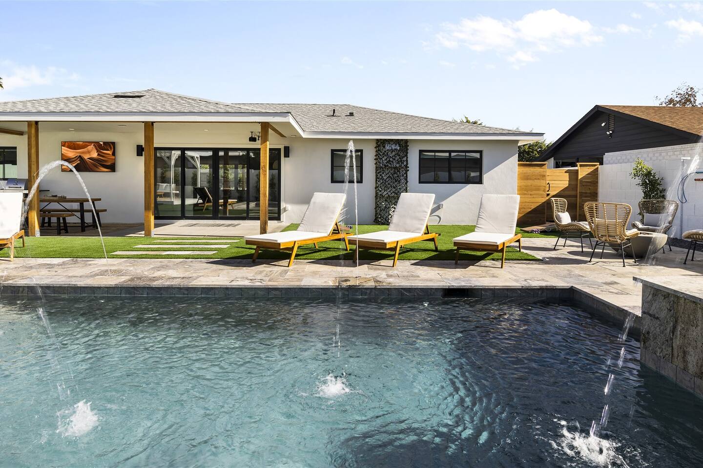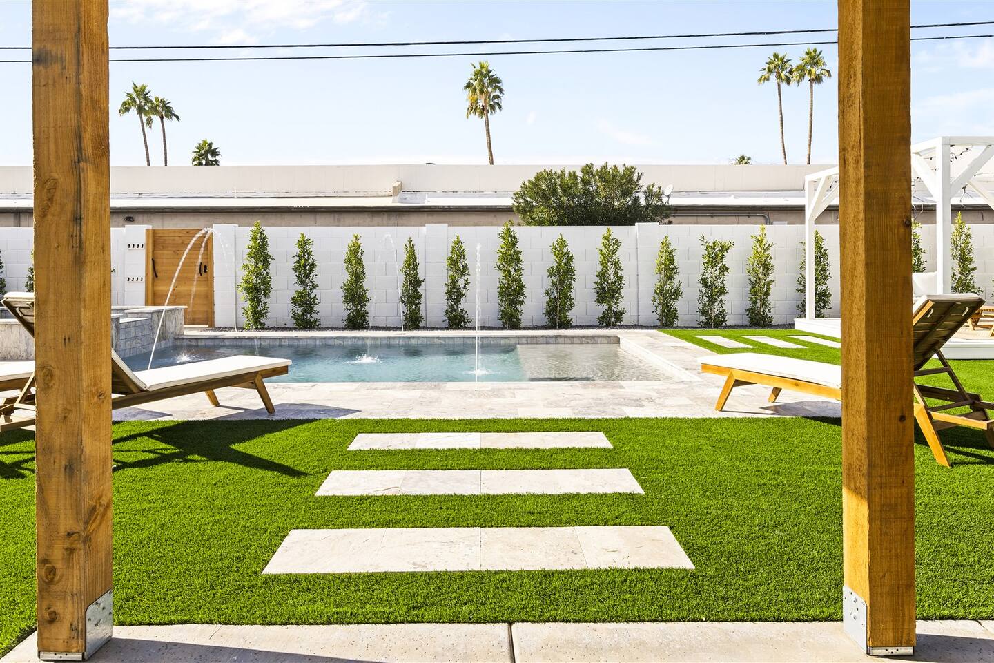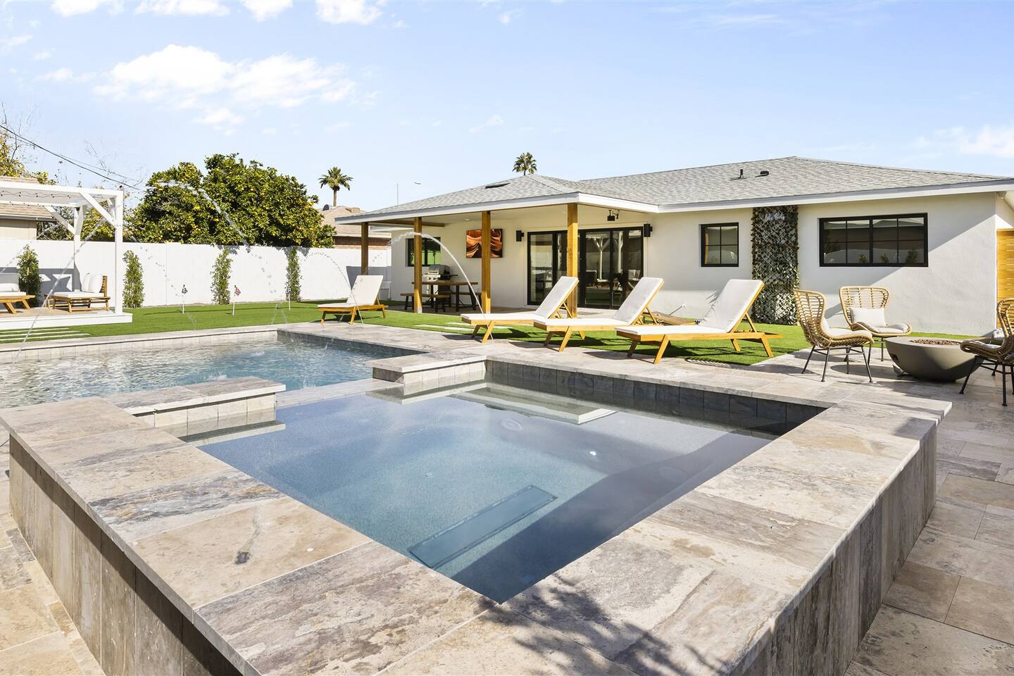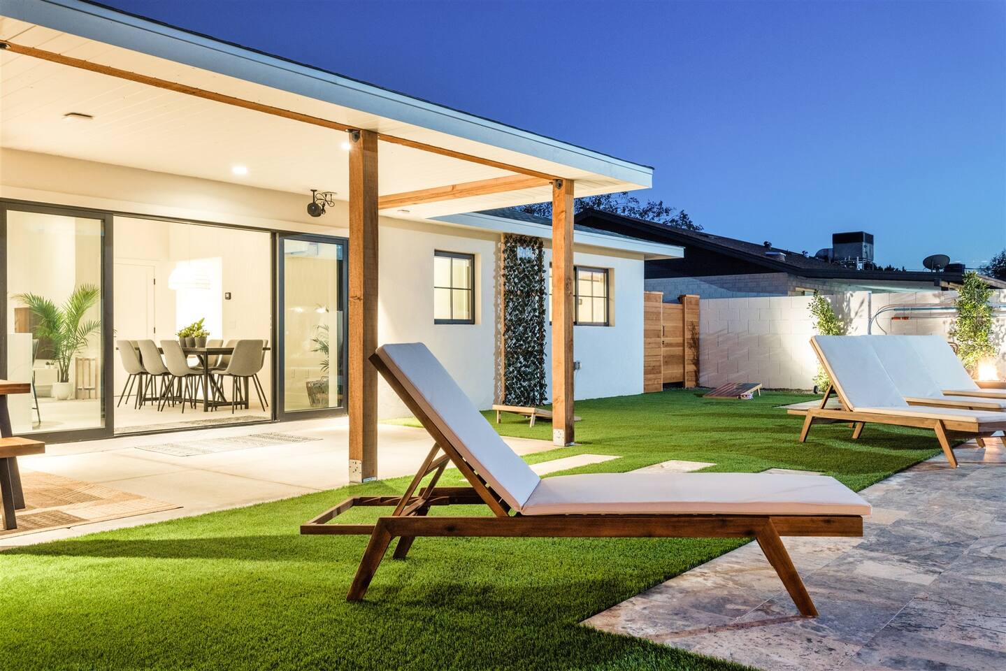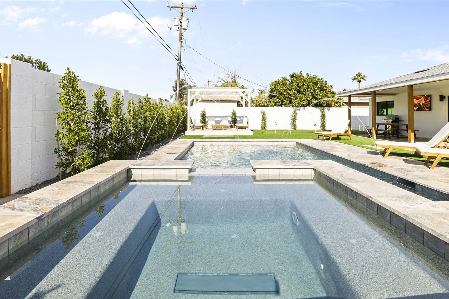 Reesor Desert Resort is a newly remodeled modern desert oasis, only minutes away from Old Town Scottsdale! This open floor plan is the perfect space for young adults or families to enjoy. Complete with a pool, hot tub, fire pit, putting green, outdoor bbq grill, and outdoor dining with tropical views of palm trees and mountains! This is the ultimate private resort vibe, with picturesque spots around every corner!