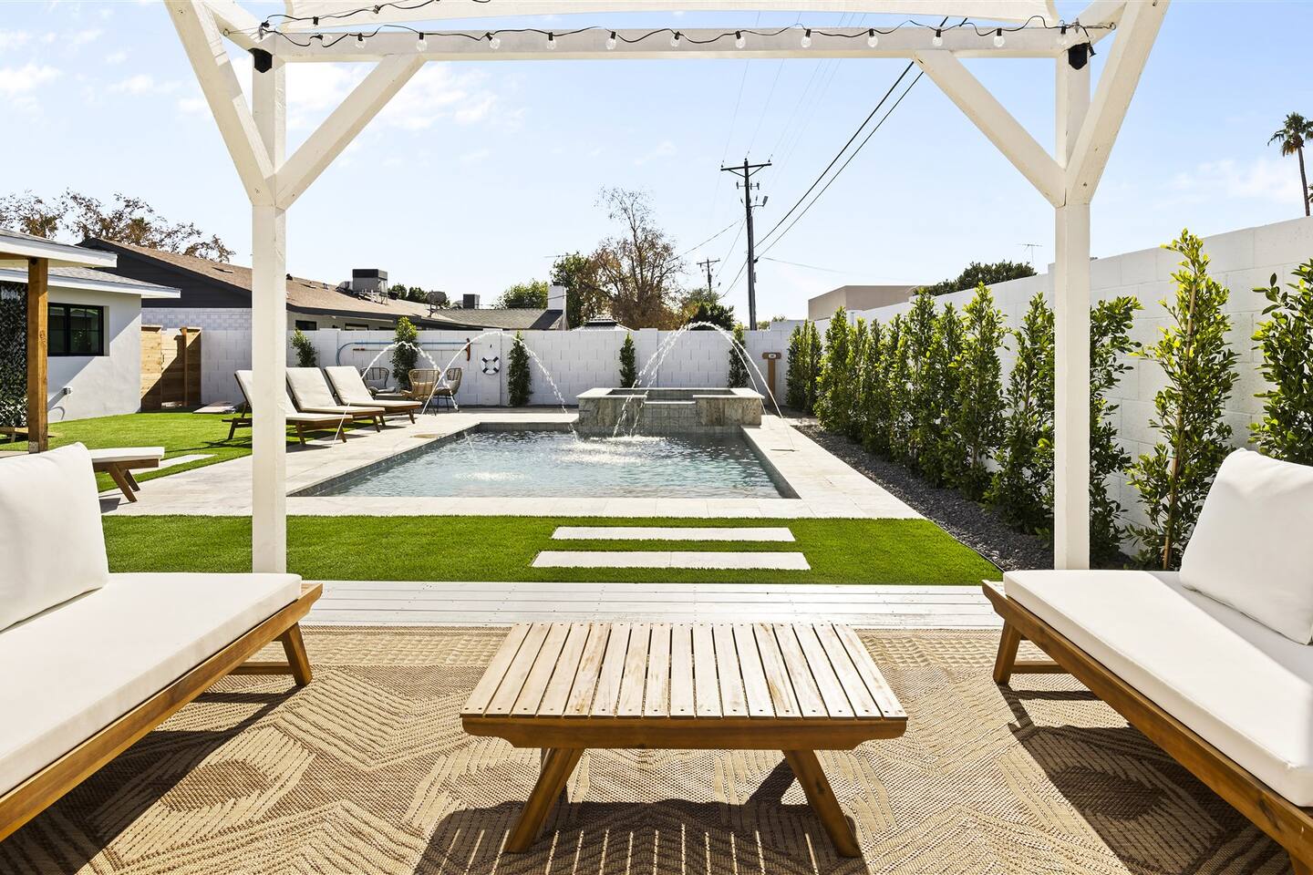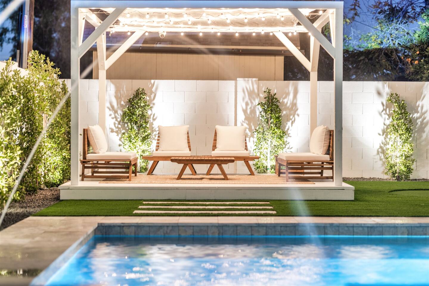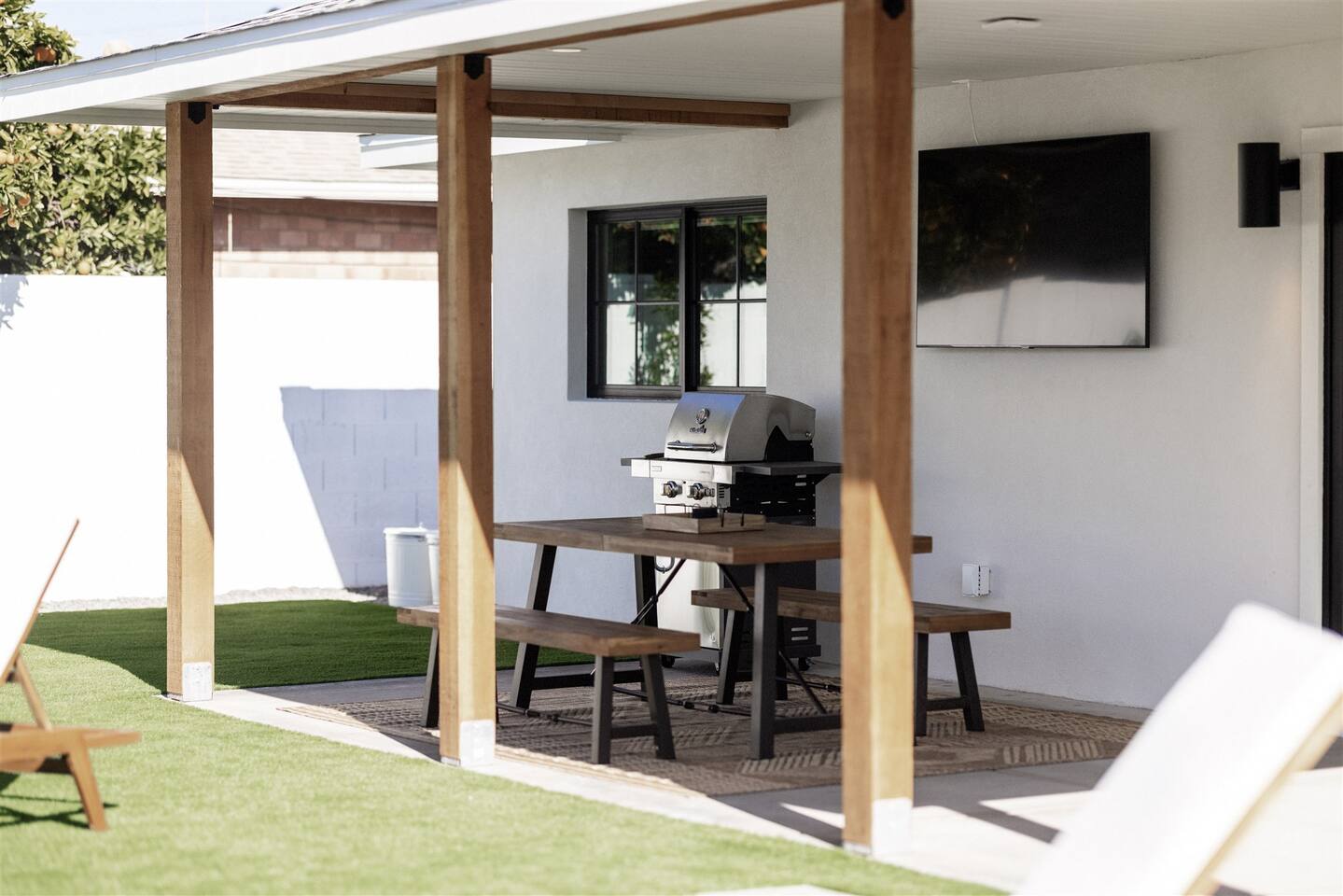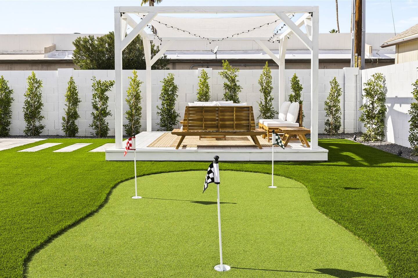 Reesor Desert Resort is a newly remodeled modern desert oasis, only minutes away from Old Town Scottsdale! This open floor plan is the perfect space for young adults or families to enjoy. Complete with a pool, hot tub, fire pit, putting green, outdoor bbq grill, and outdoor dining with tropical views of palm trees and mountains! This is the ultimate private resort vibe, with picturesque spots around every corner!