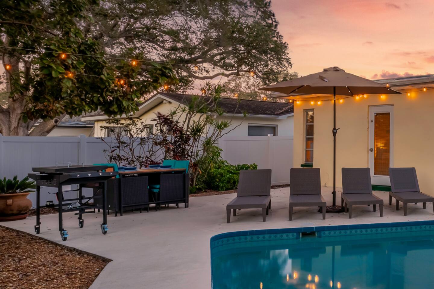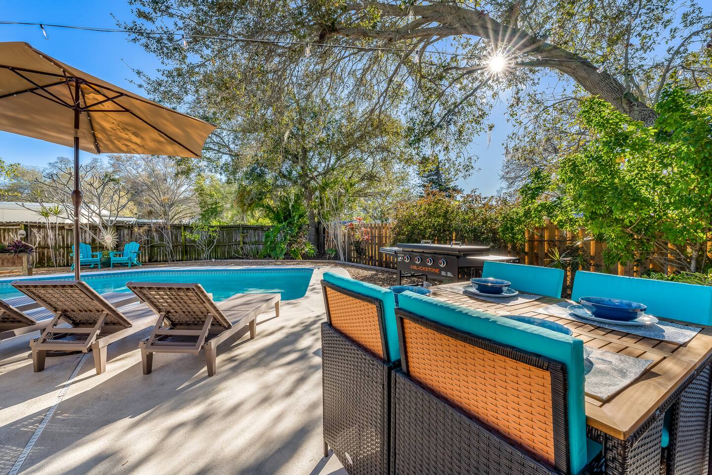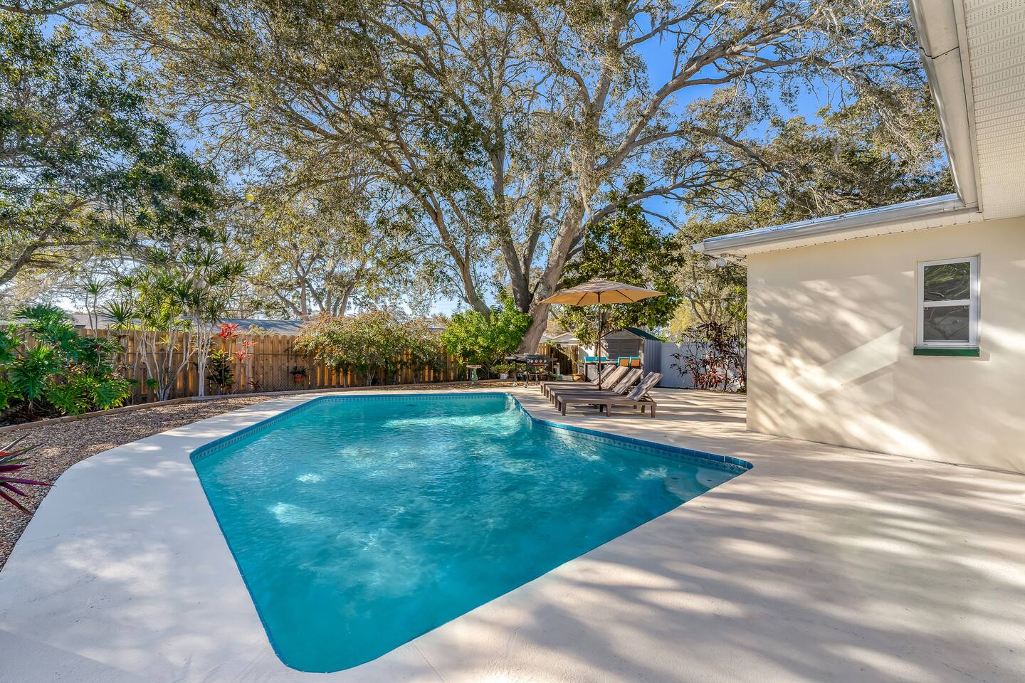 Sunny Palms is a modest tropical oasis, only minutes away from Indian Rocks Beach! The perfect space for young adults or families to enjoy. Complete with a pool, outdoor BBQ grill, and outdoor dining with tropical views of palm trees!