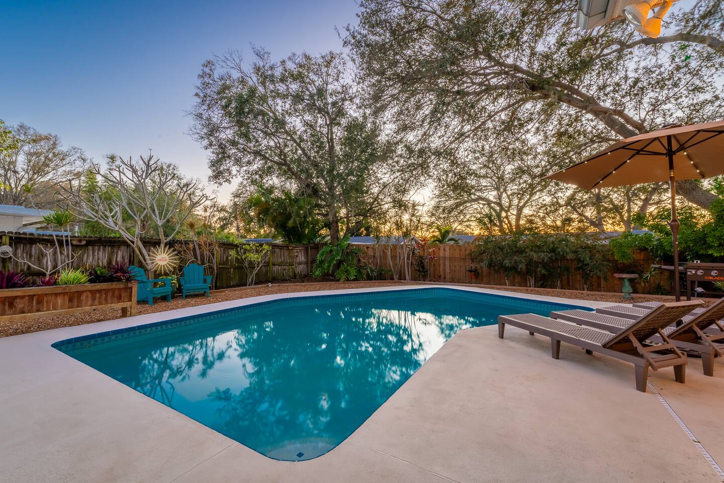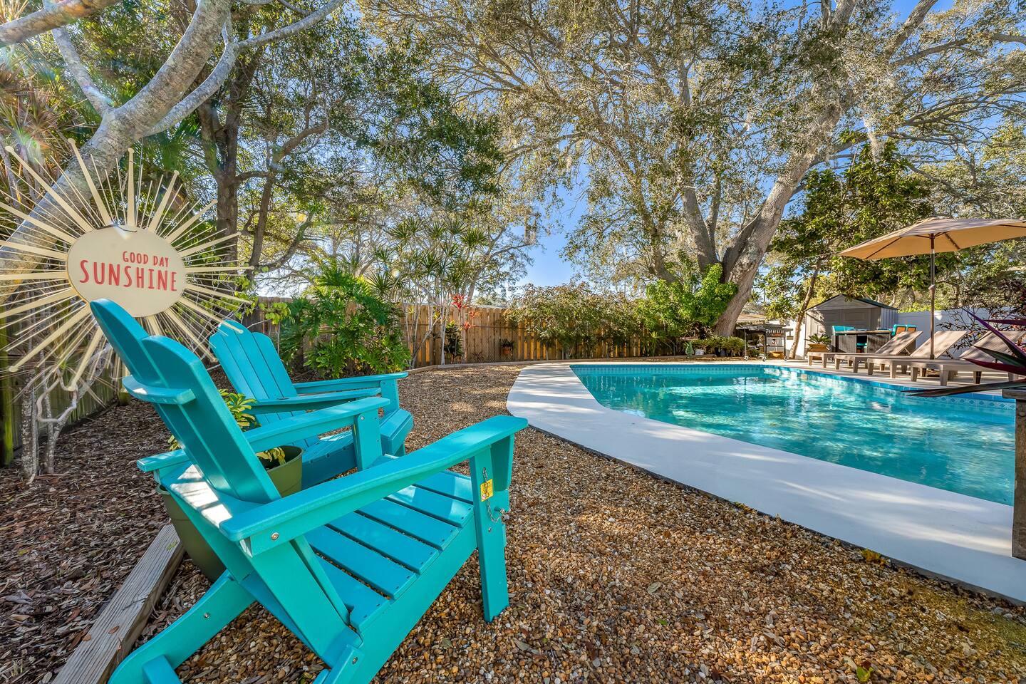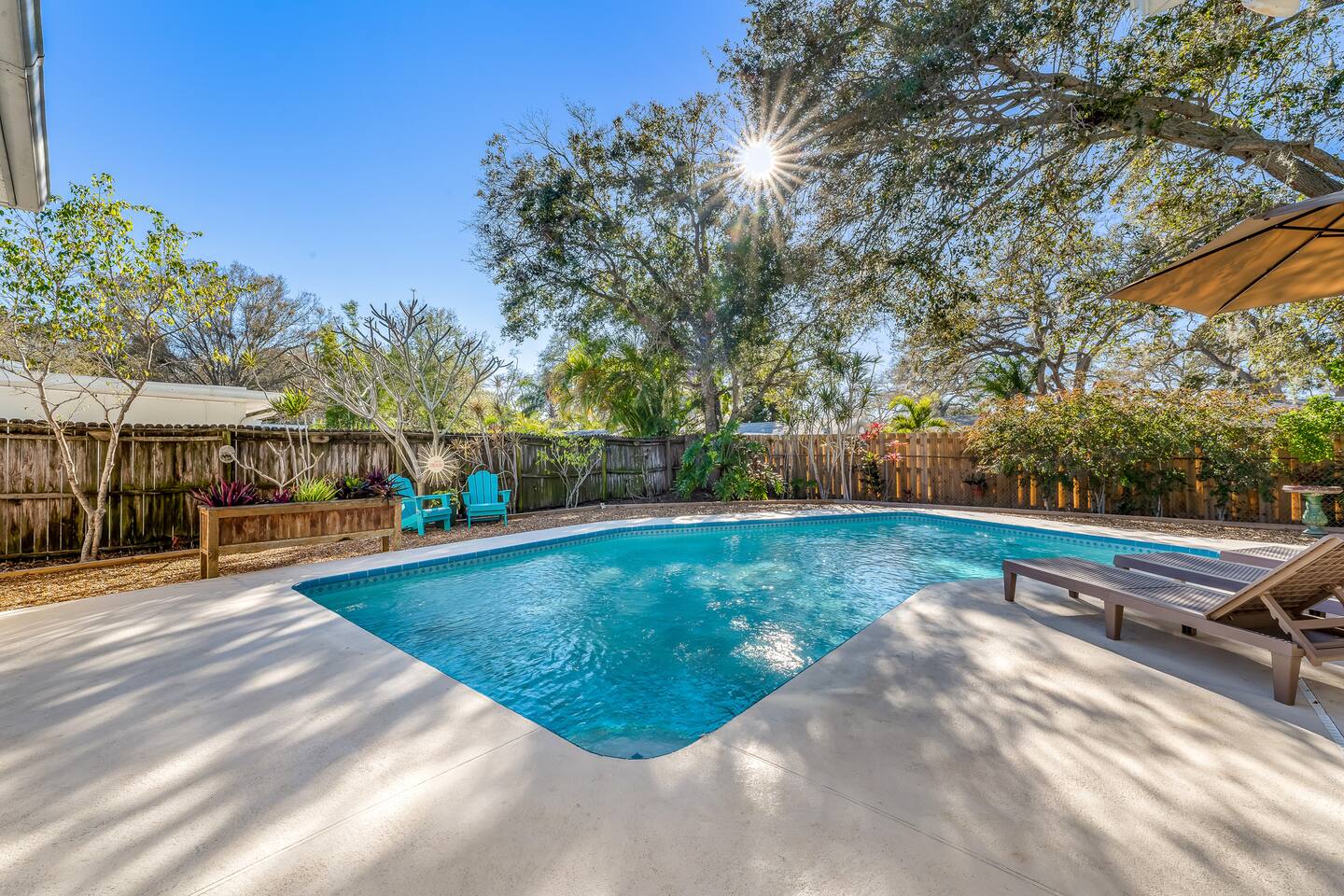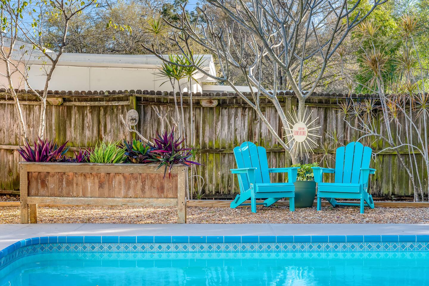 Sunny Palms is a modest tropical oasis, only minutes away from Indian Rocks Beach! The perfect space for young adults or families to enjoy. Complete with a pool, outdoor BBQ grill, and outdoor dining with tropical views of palm trees!