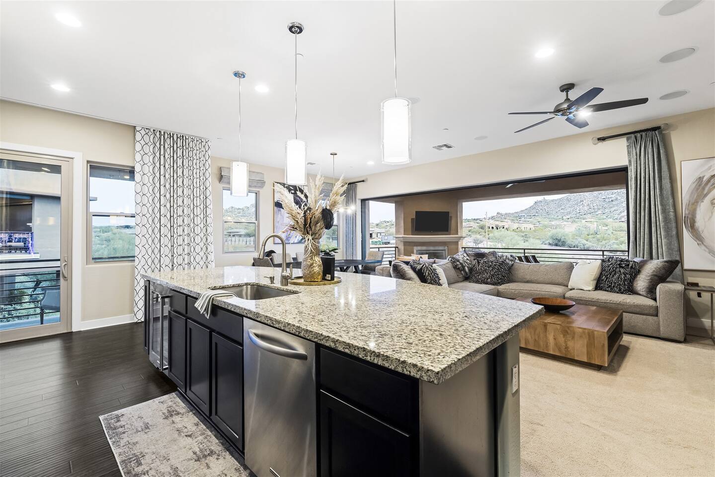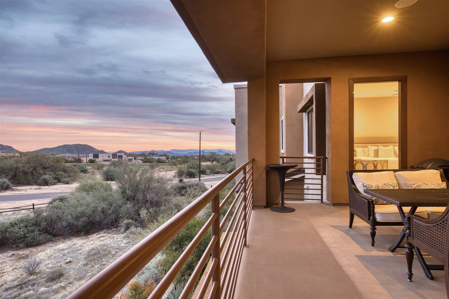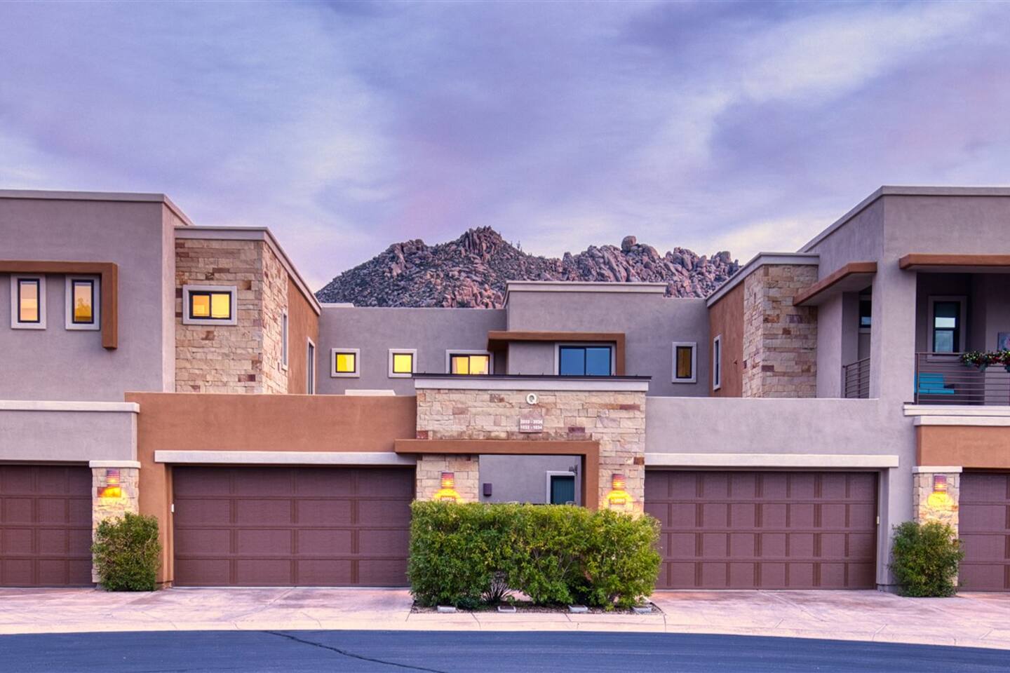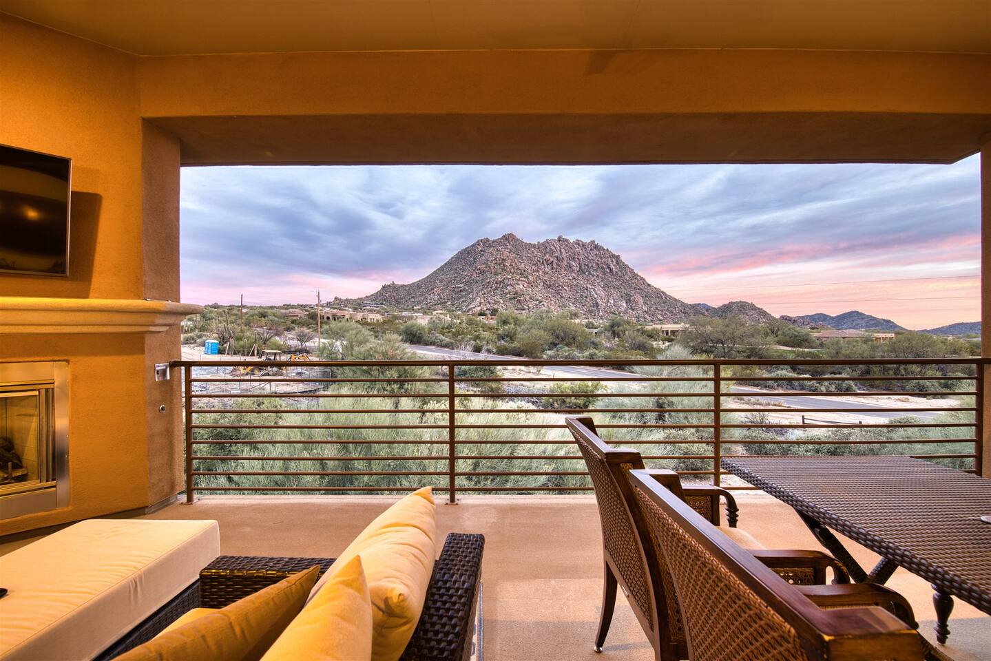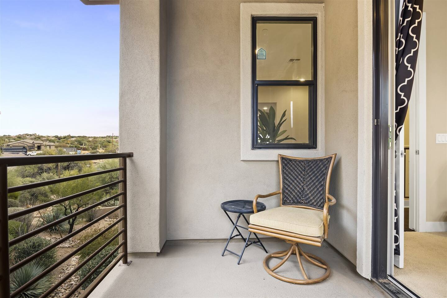 ARRIVAL & ENTRY Enter through your private, attached garage into a welcoming foyer—parking and unloading are seamless. A single flight of stairs leads to the entire residence on one level. MAIN LIVING AREA An open-concept great room pairs designer furnishings with a dramatic wall-length sliding glass door that opens fully to the patio for true indoor–outdoor living and uninterrupted mountain views. CHEF’S KITCHEN & DINING Sleek, fully equipped kitchen with premium appliances and generous island seating flows to a sophisticated dining area—ideal for casual breakfasts or elegant dinners. SIGNATURE PATIO Your private outdoor lounge is an entertainer’s dream: - TV for game nights and movies under the stars - Built-in grill for al-fresco dining - Fireplace for golden-hour cocktails and cool desert evenings - Expansive seating oriented to the McDowell Mountain backdrop BEDROOMS & BATHS - PRIMARY SUITE – King bed, spa bath with large walk-in shower and soaking tub - SECOND BEDROOM – Queen bed with en-suite bathroom - THIRD BEDROOM – Queen bed with adjacent full bath - ADDITIONAL SLEEPING – Queen sleeper sofa on landing - LAUNDRY – In-home washer & dryer for longer stays COMMUNITY AMENITIES - Heated pool and spa - Outdoor BBQ areas - Fitness room (community) - Pristine Sonoran landscaping and walkways LOCATION & LIFESTYLE Minutes to Troon North Golf Club, Pinnacle Peak hiking, and North Scottsdale’s premier dining and shopping. Approximately 12 miles to Mayo Clinic. ACCESSIBILITY NOTE: Not wheelchair accessible; living space is on the second level accessed by one interior staircase.