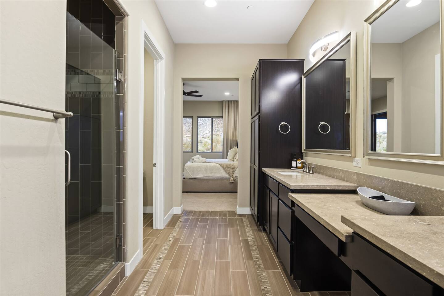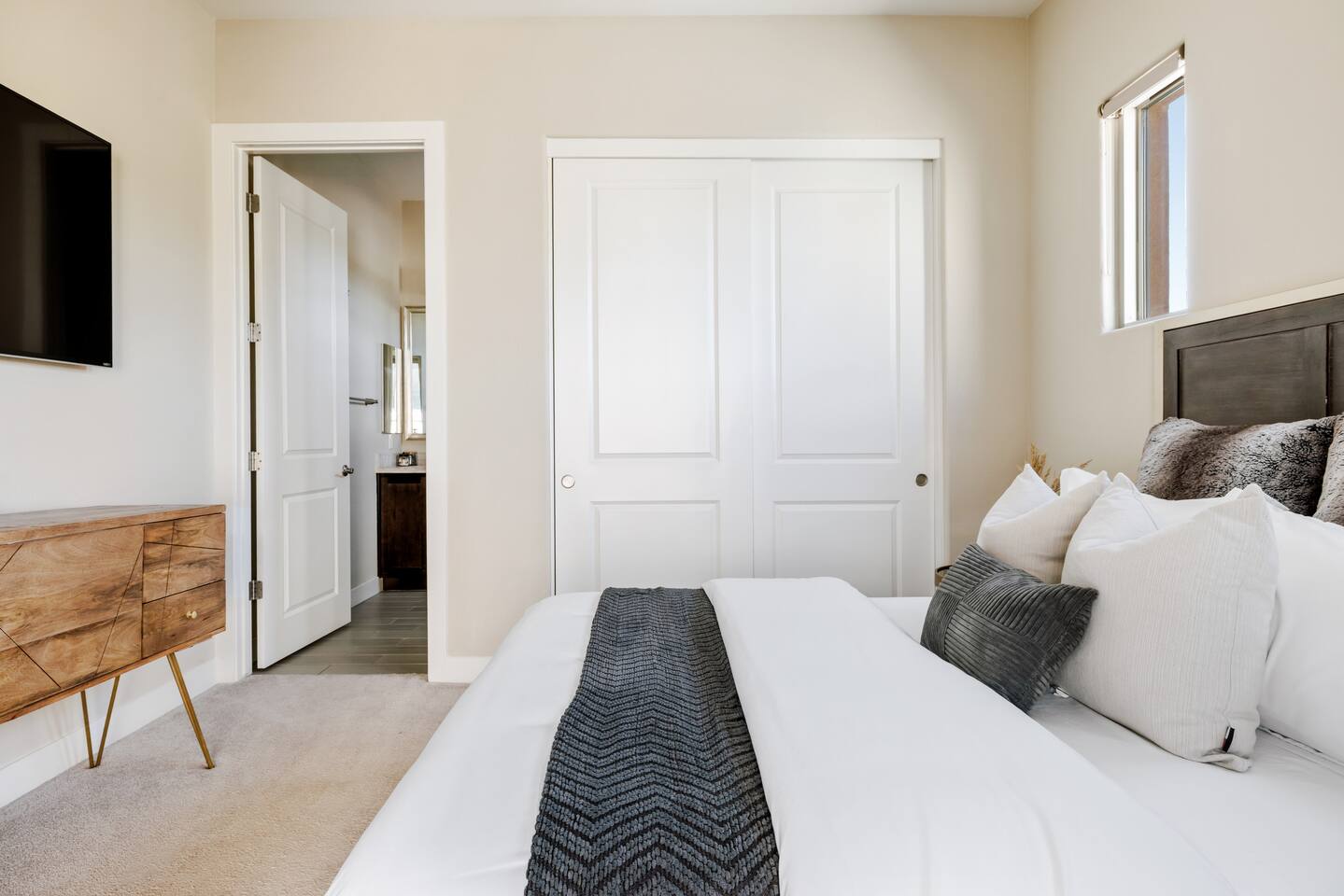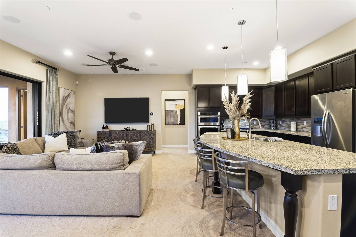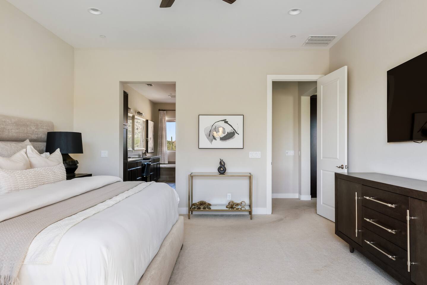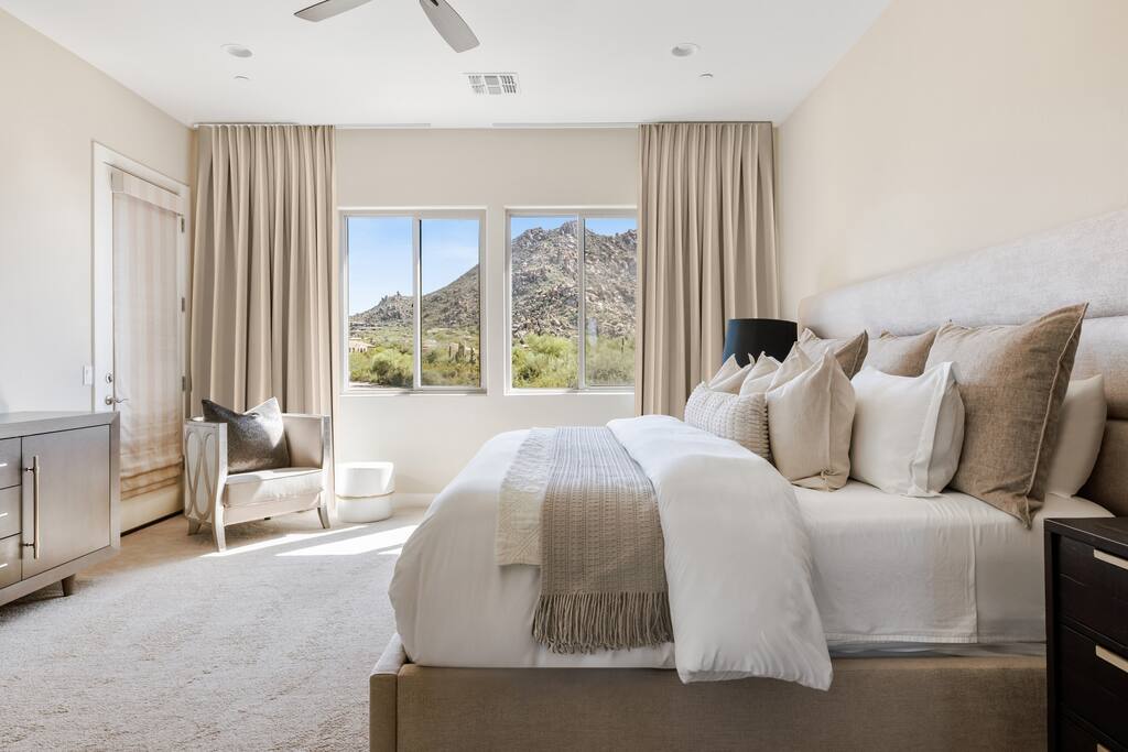 ARRIVAL & ENTRY Enter through your private, attached garage into a welcoming foyer—parking and unloading are seamless. A single flight of stairs leads to the entire residence on one level. MAIN LIVING AREA An open-concept great room pairs designer furnishings with a dramatic wall-length sliding glass door that opens fully to the patio for true indoor–outdoor living and uninterrupted mountain views. CHEF’S KITCHEN & DINING Sleek, fully equipped kitchen with premium appliances and generous island seating flows to a sophisticated dining area—ideal for casual breakfasts or elegant dinners. SIGNATURE PATIO Your private outdoor lounge is an entertainer’s dream: - TV for game nights and movies under the stars - Built-in grill for al-fresco dining - Fireplace for golden-hour cocktails and cool desert evenings - Expansive seating oriented to the McDowell Mountain backdrop BEDROOMS & BATHS - PRIMARY SUITE – King bed, spa bath with large walk-in shower and soaking tub - SECOND BEDROOM – Queen bed with en-suite bathroom - THIRD BEDROOM – Queen bed with adjacent full bath - ADDITIONAL SLEEPING – Queen sleeper sofa on landing - LAUNDRY – In-home washer & dryer for longer stays COMMUNITY AMENITIES - Heated pool and spa - Outdoor BBQ areas - Fitness room (community) - Pristine Sonoran landscaping and walkways LOCATION & LIFESTYLE Minutes to Troon North Golf Club, Pinnacle Peak hiking, and North Scottsdale’s premier dining and shopping. Approximately 12 miles to Mayo Clinic. ACCESSIBILITY NOTE: Not wheelchair accessible; living space is on the second level accessed by one interior staircase.